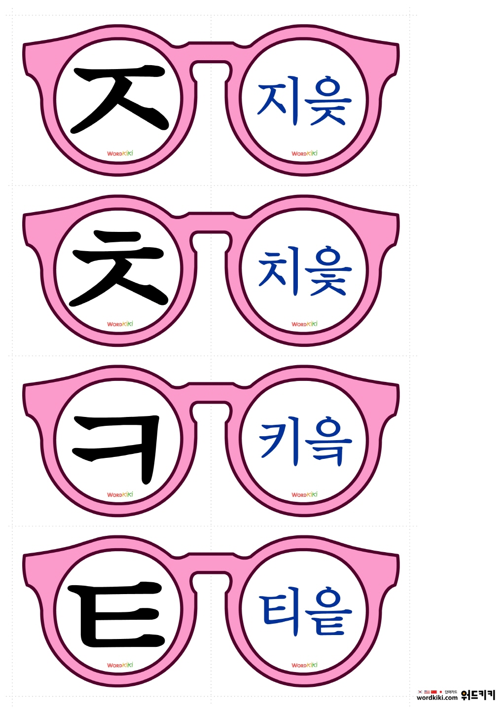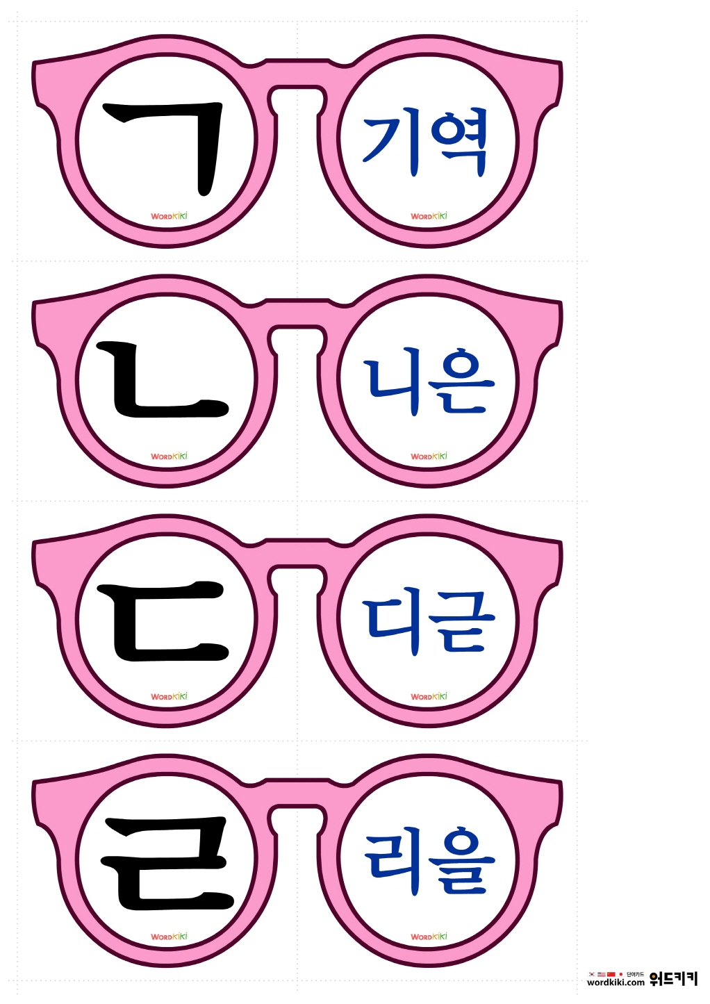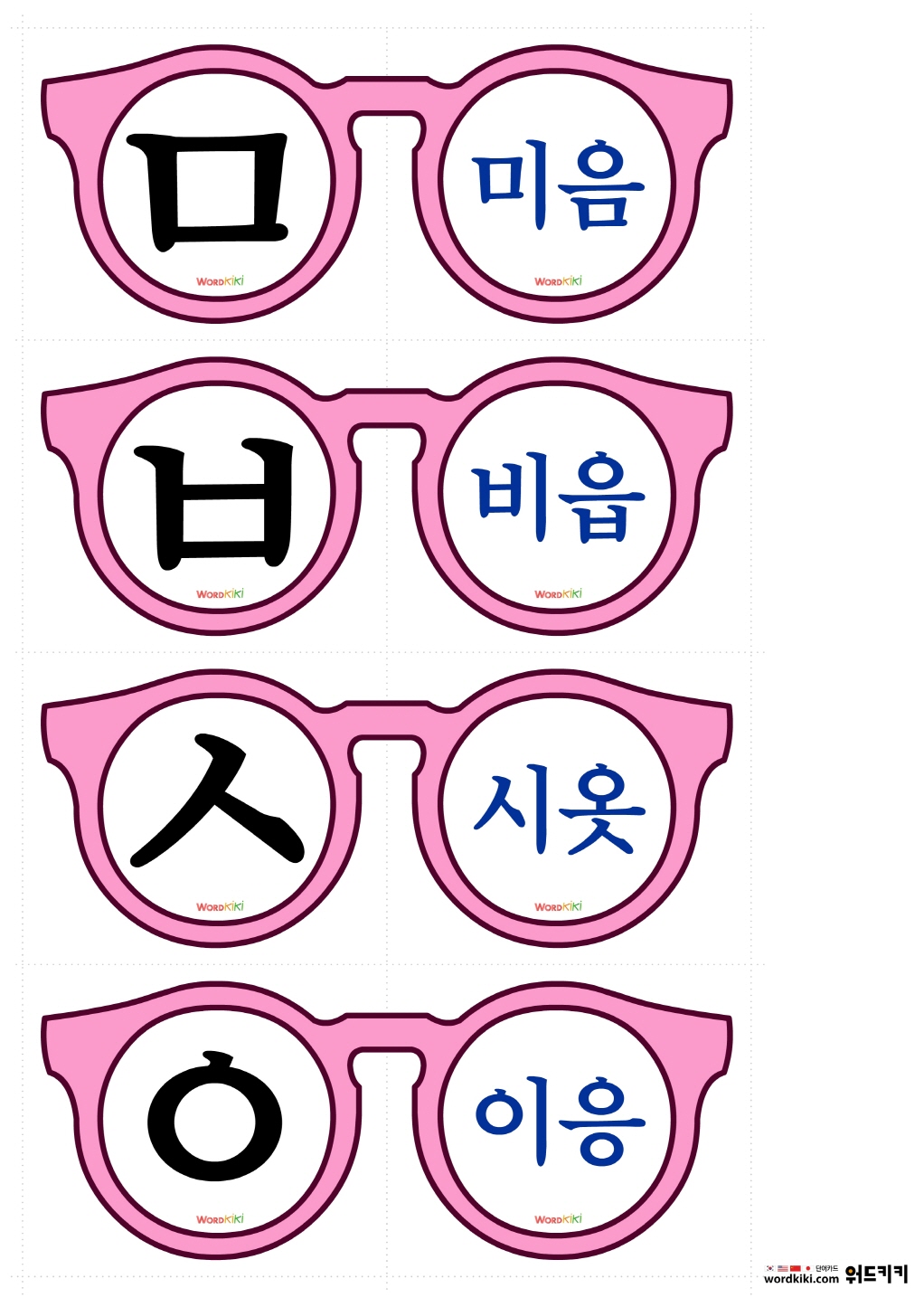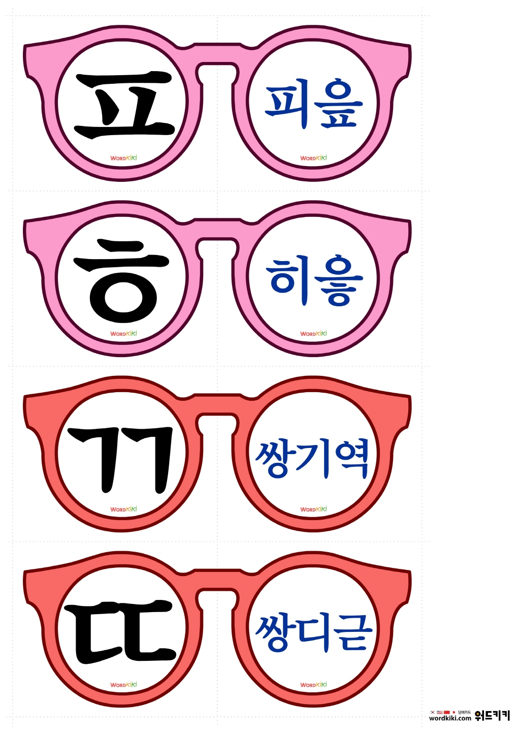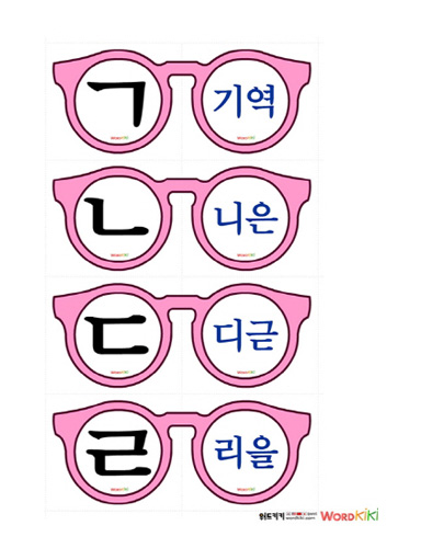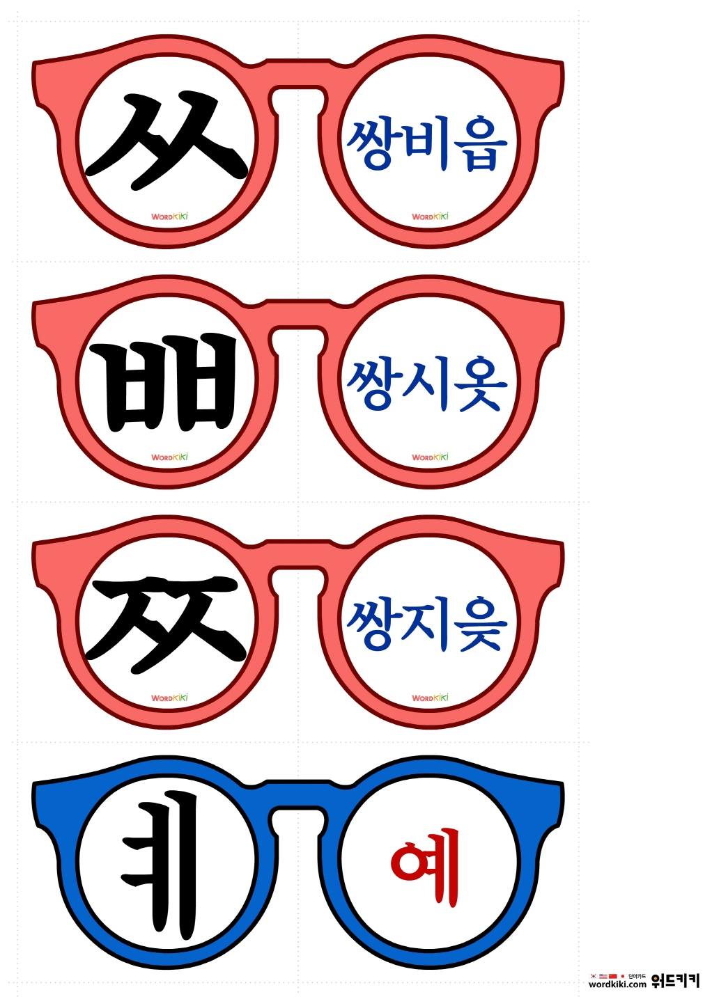 안경교구를 자른 뒤 반으로 접어 자음 학습에 활용 할 수 있습니다.