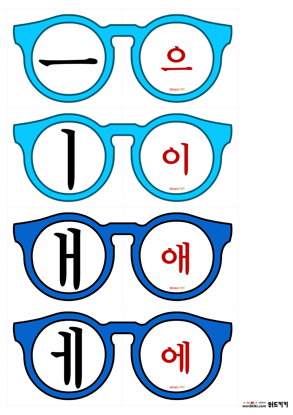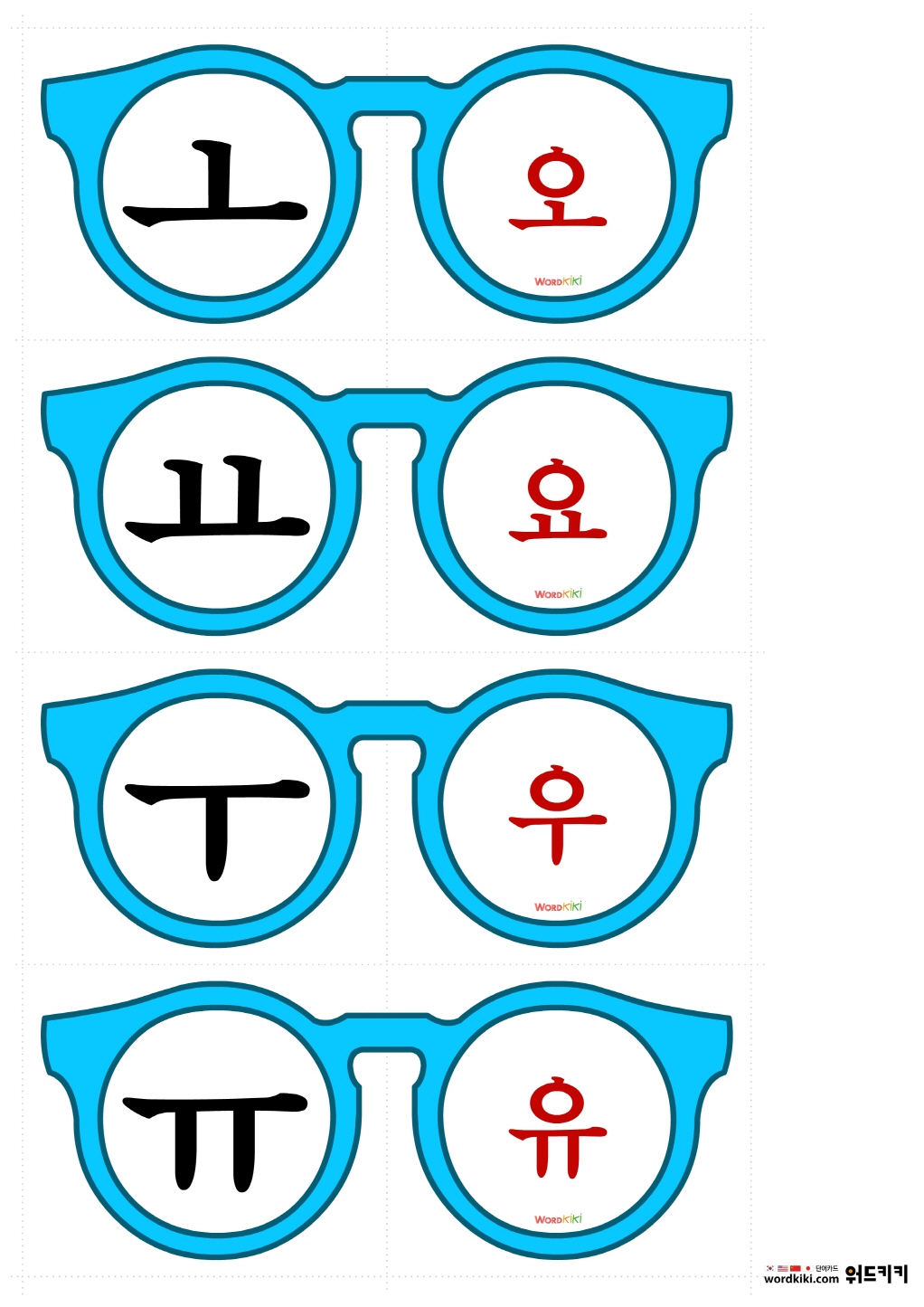 안경교구를 자른 뒤 반으로 접어 모음 학습에 활용 할 수 있습니다.