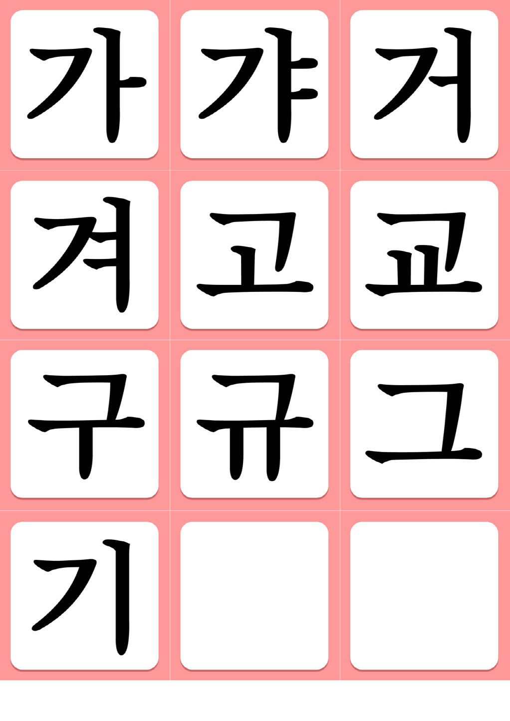 가 갸 거 겨 고 교 구 규 그 기