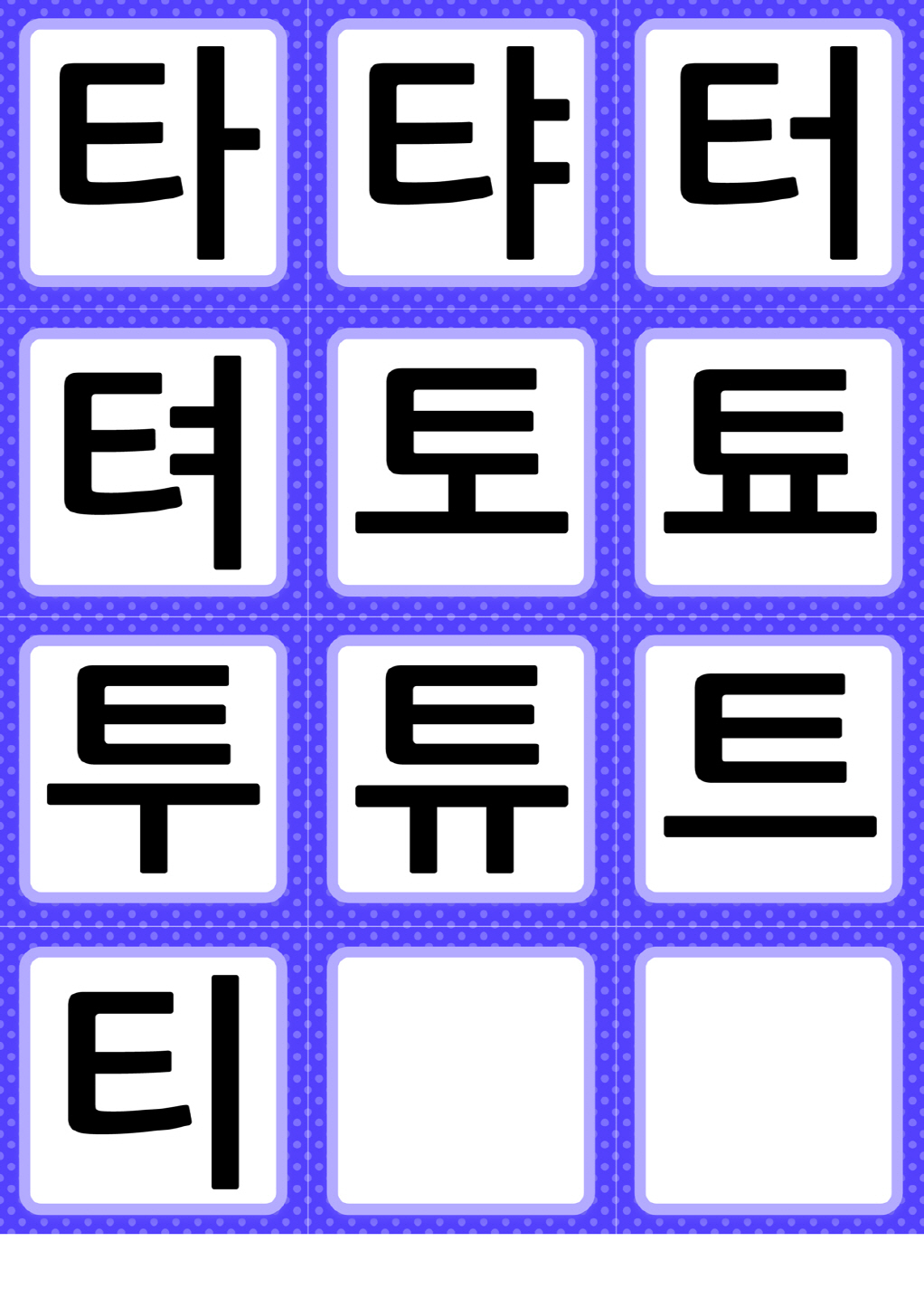 타 탸 터 텨 토 툐 투 튜 트 티