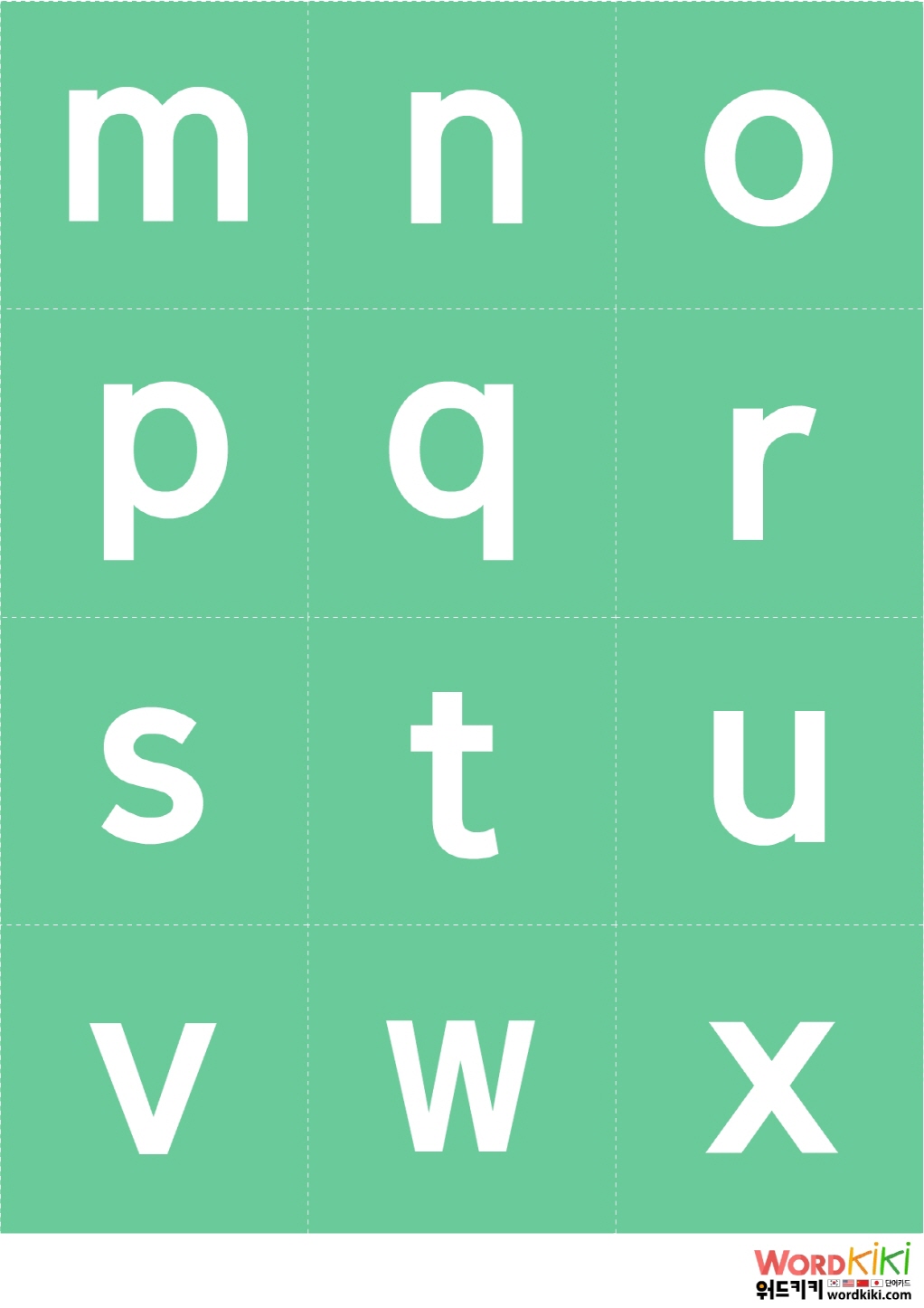 알파벳 소문자 플래시 카드를 프린트 후 코팅해서 사용 하세요.