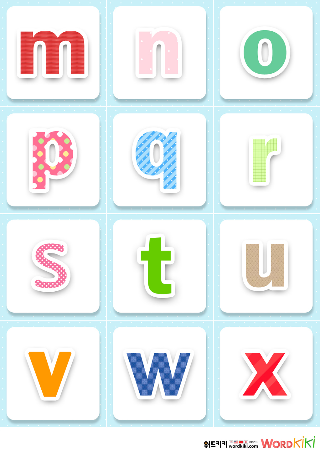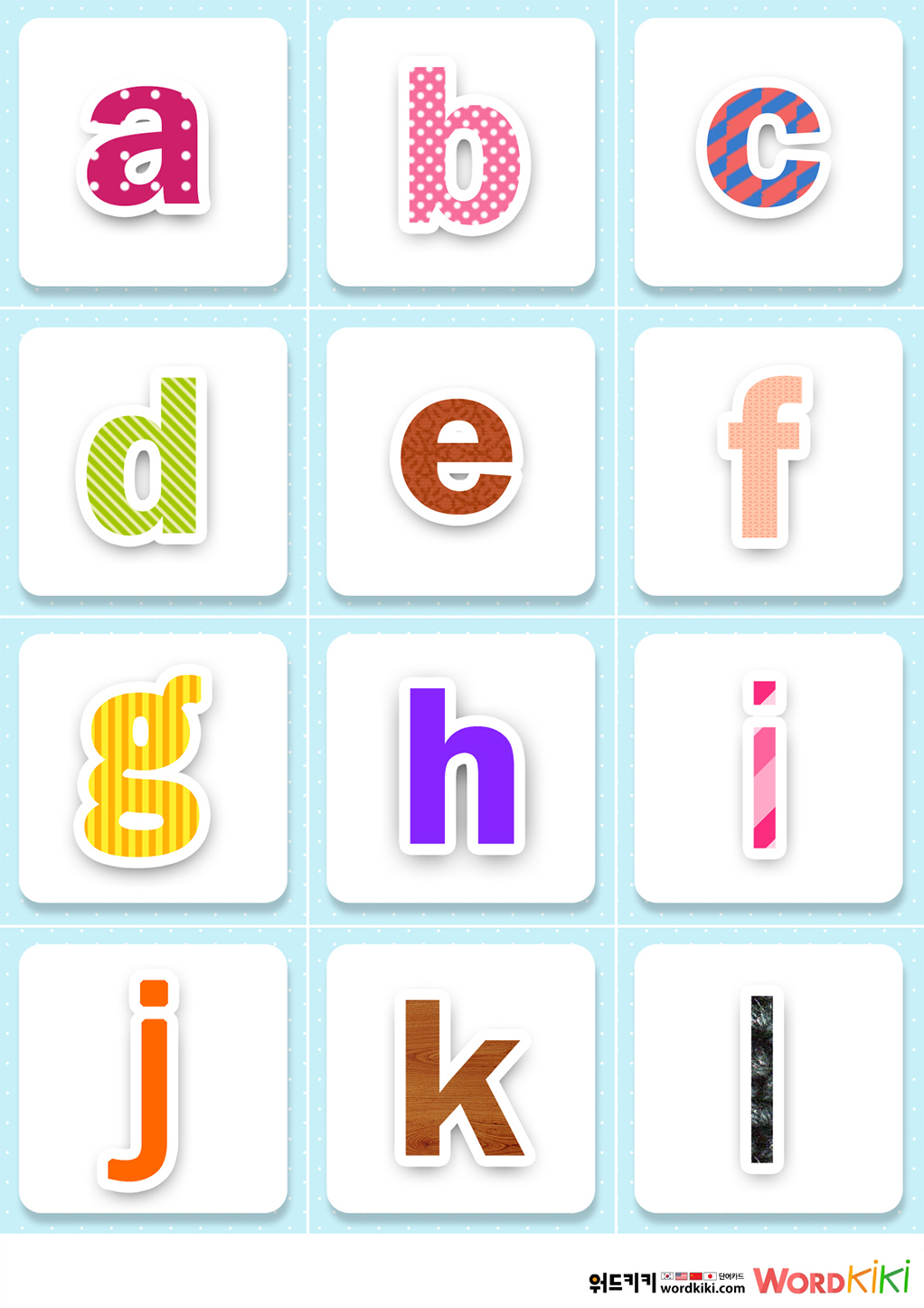 | [알파벳카드 7장] 알파벳 소문자 플래시카드, Alphabet Letter Flashcards – lower case (0) | 2024.03.06 |