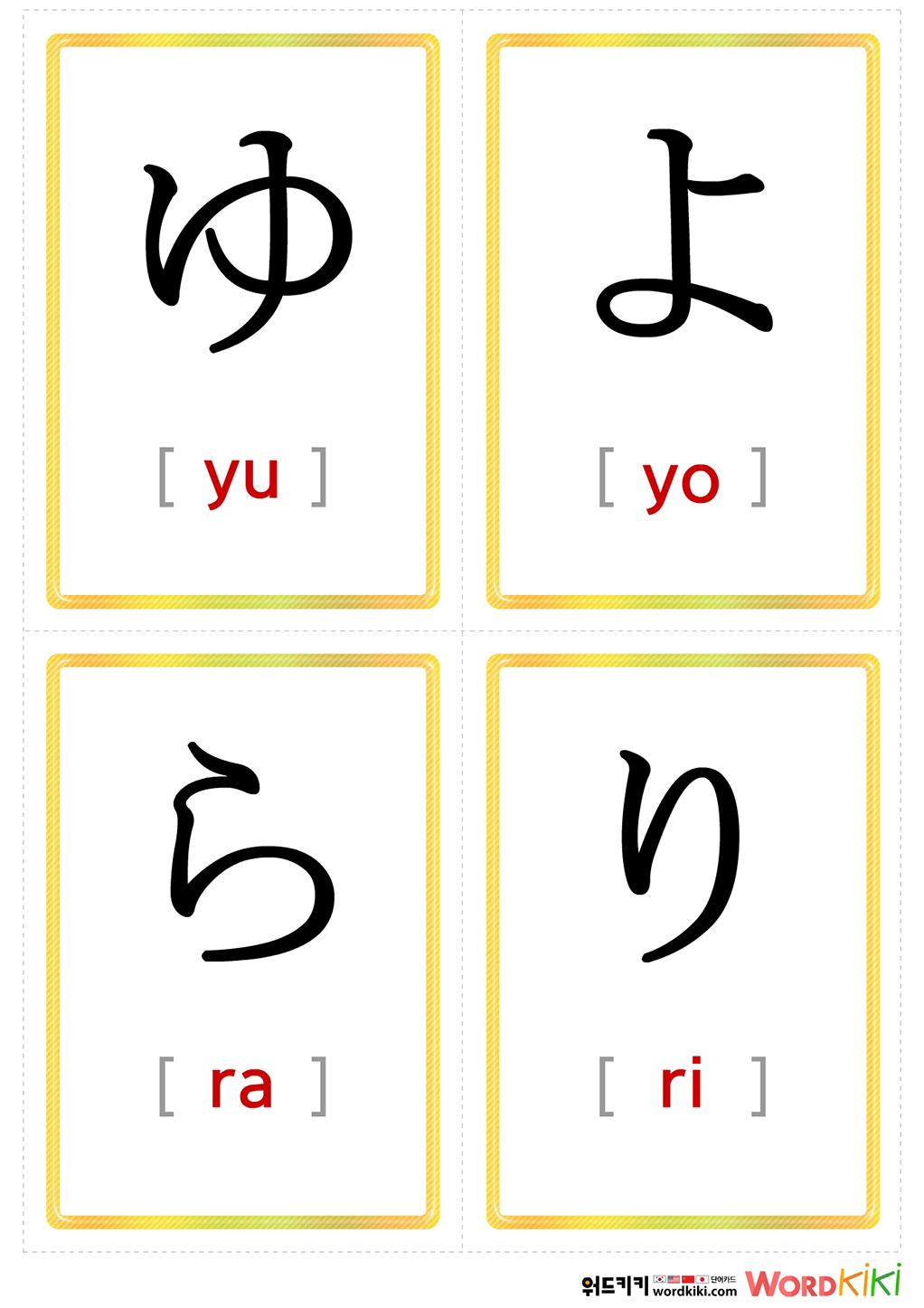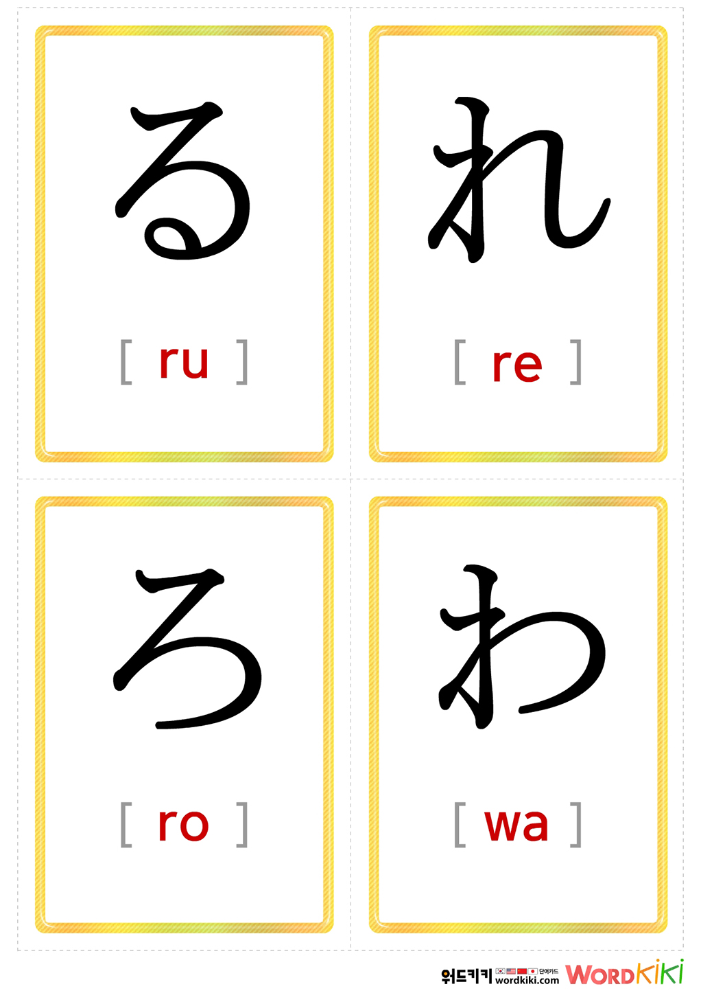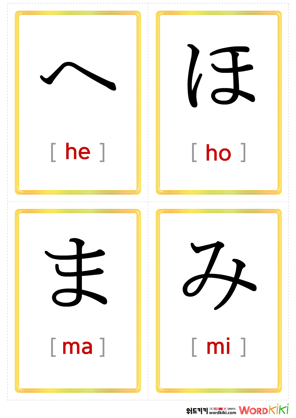 [히라가나 카드 12장] 일본어 50음도 – 4컷 ひらがな flashcard