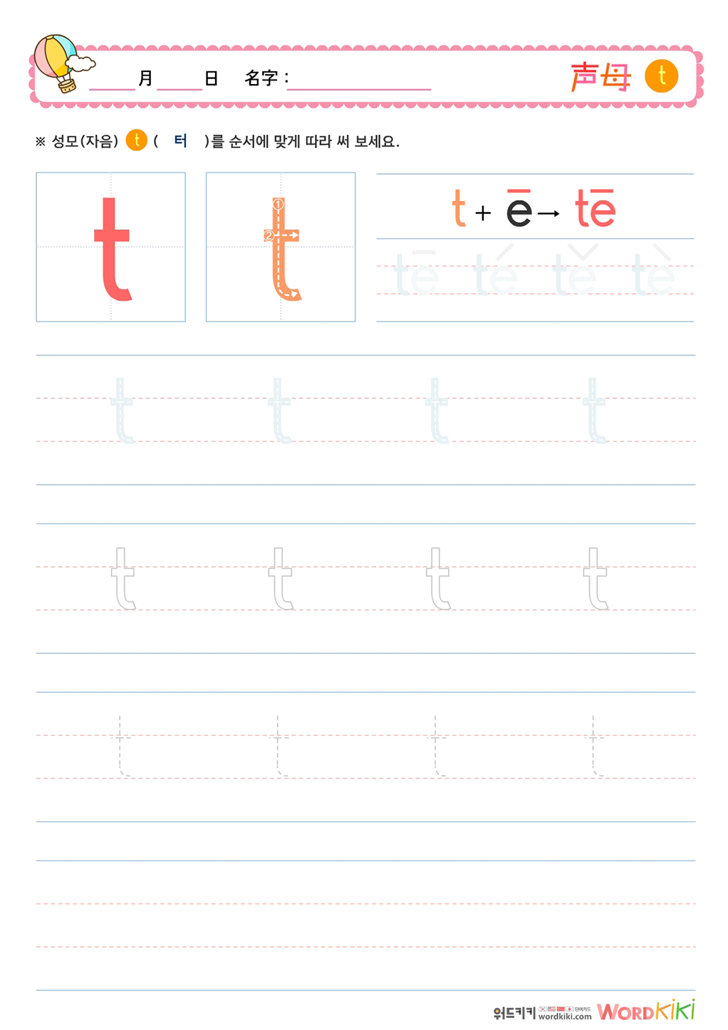 성모(声母)쓰기 - te