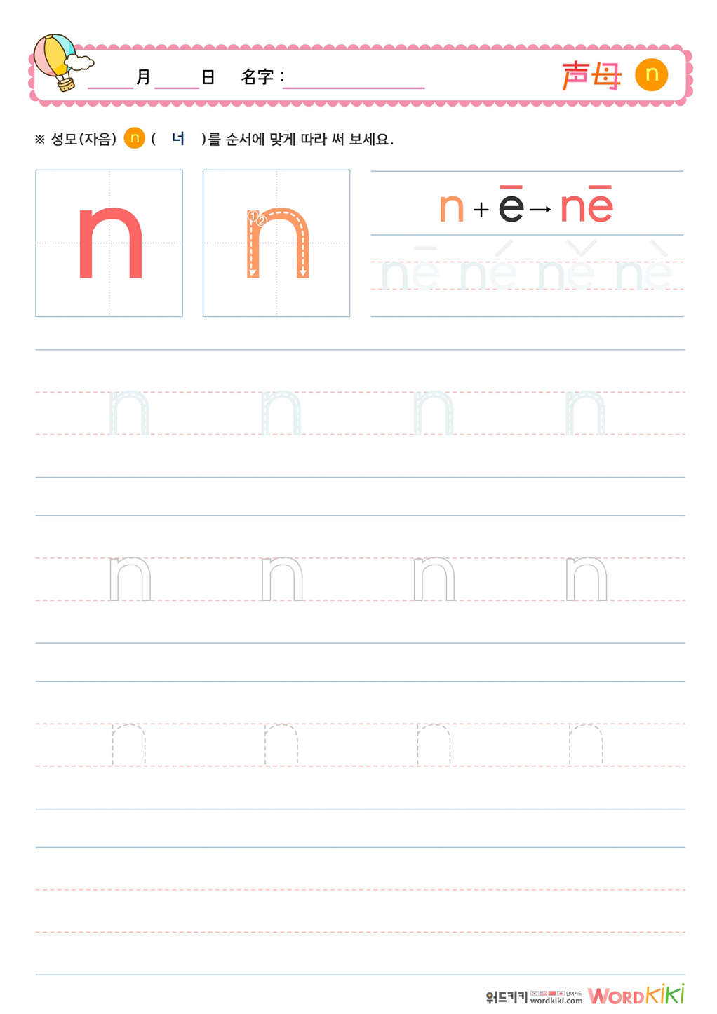 성모(声母)쓰기 - ne