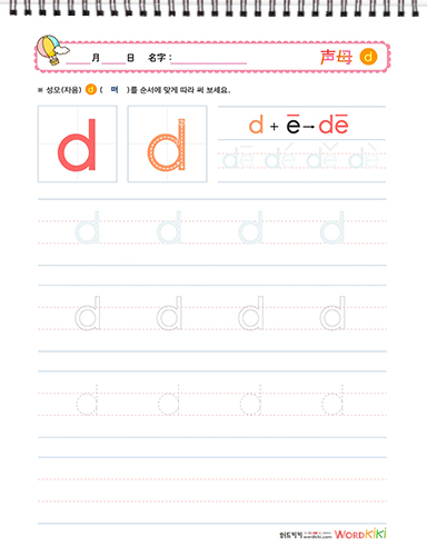 성모(声母)쓰기 - de