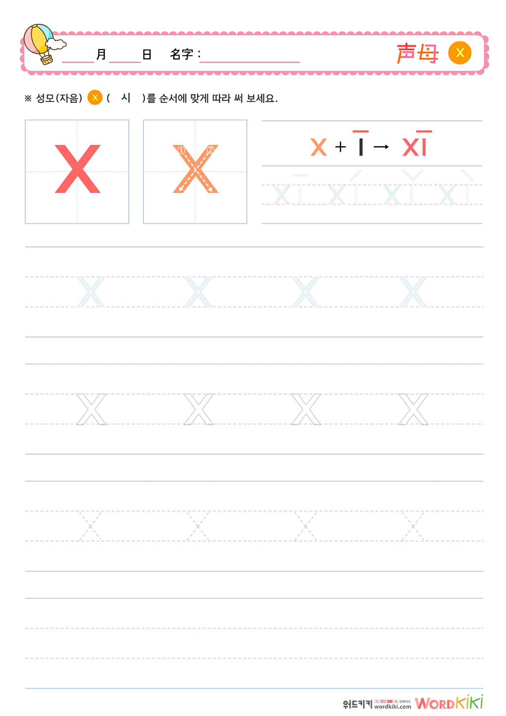 성모(声母)쓰기 - xi