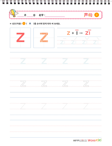 무료프린트학습지로 중국어 성모 쓰기 (writing chinese) 연습장입니다.