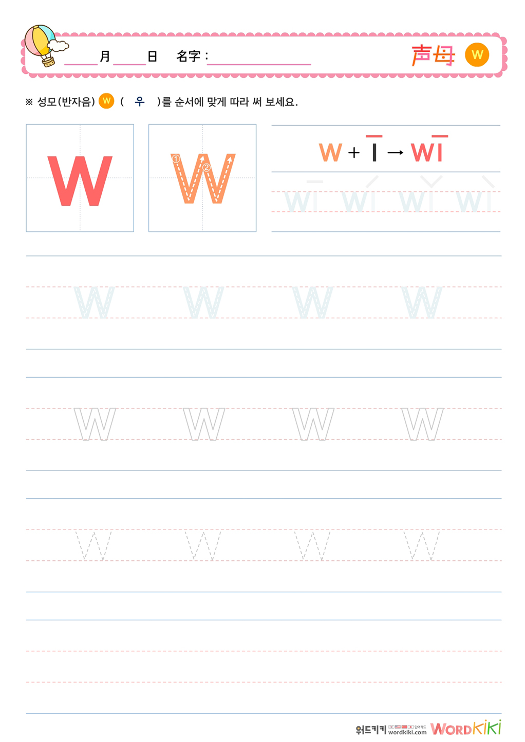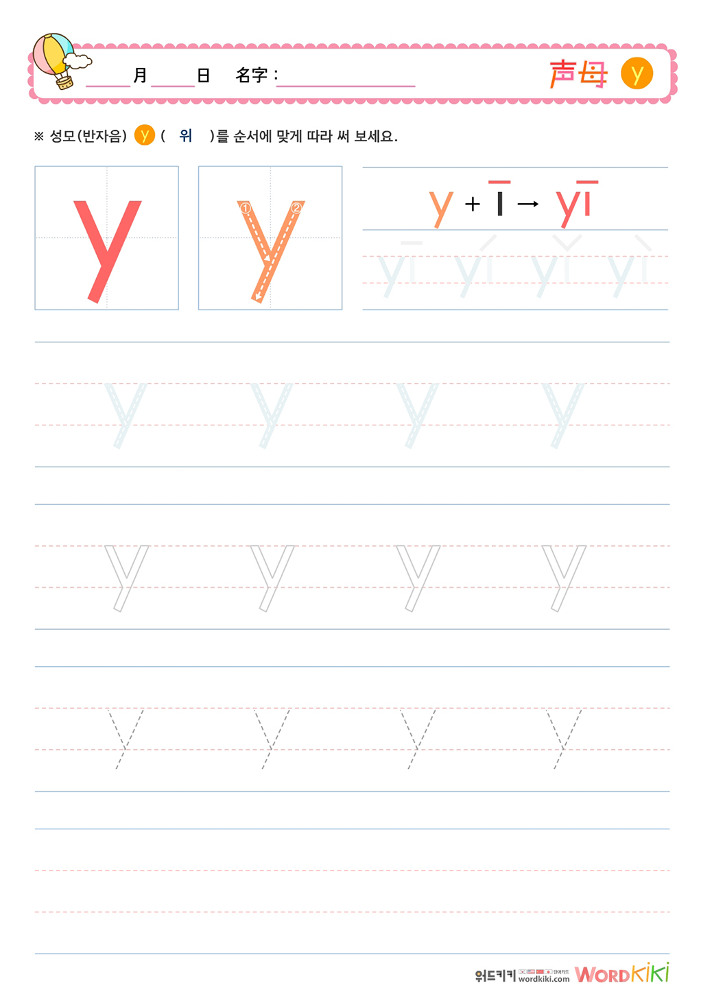 [한어병음쓰기 2장] 중국어 병음쓰기 – 성모(yw)쓰기