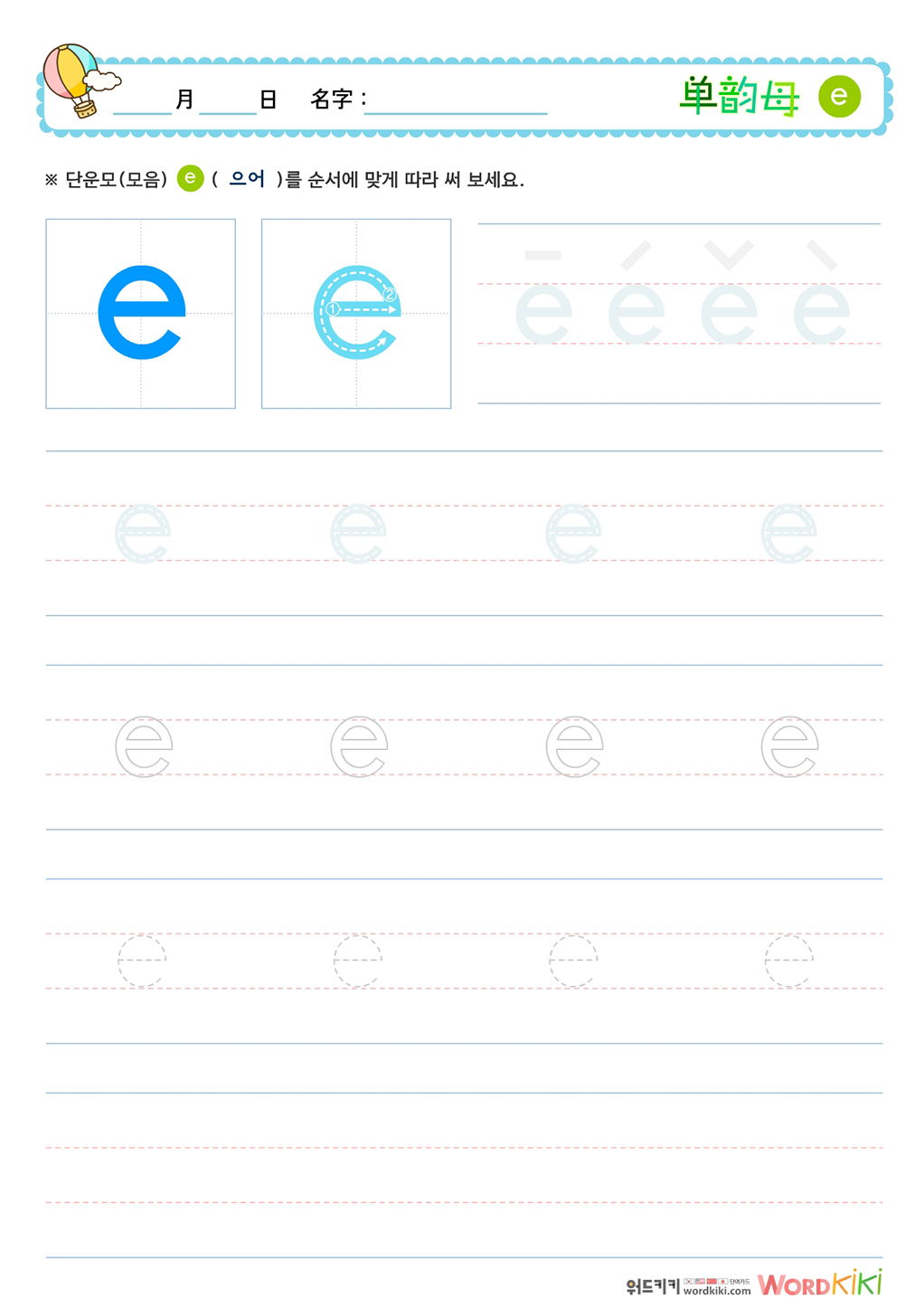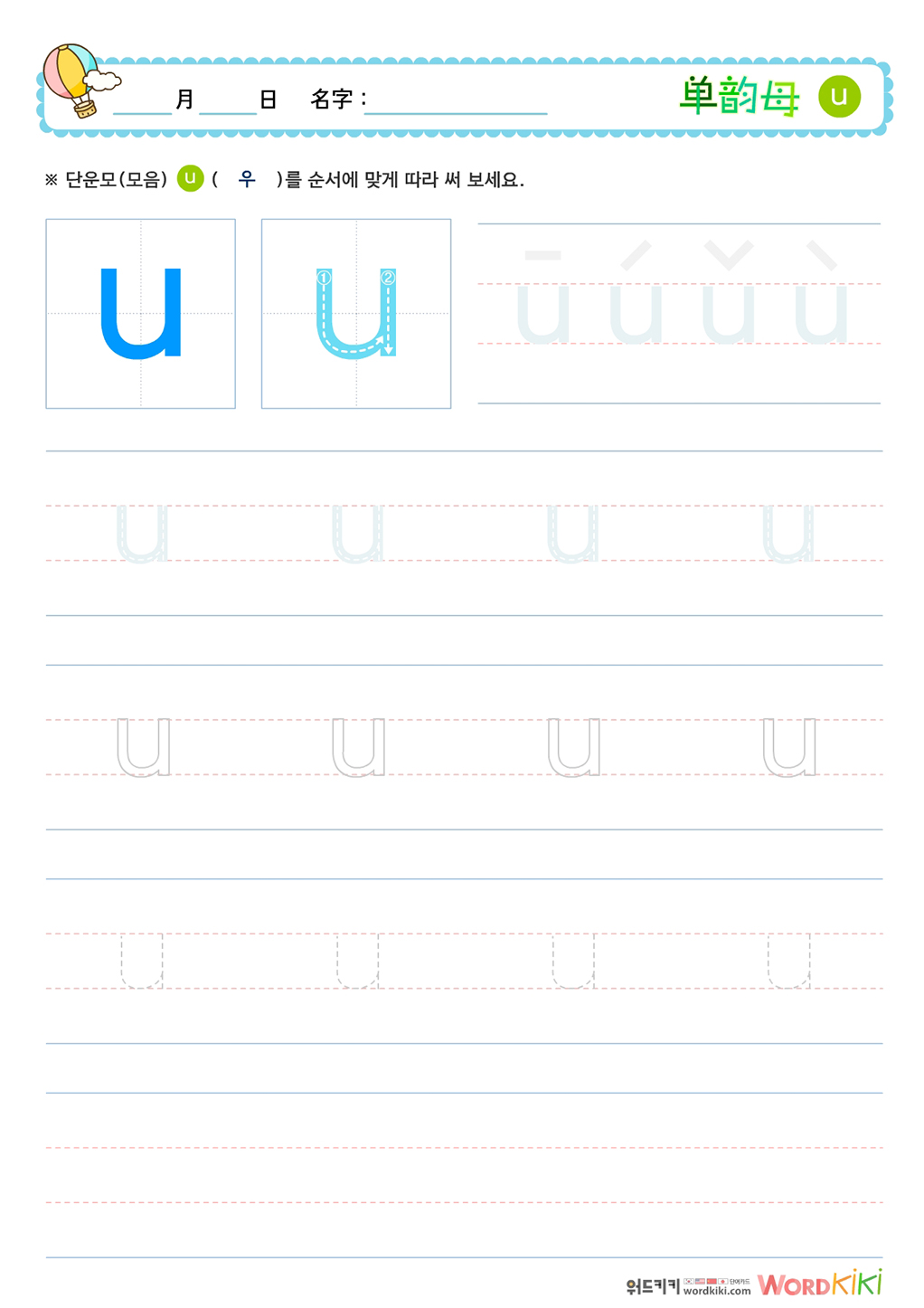 중국어따라쓰기/무료프린트학습지/엄마표중국어/중국어운모학습/유아중국어/어린이중국어/플래시카드프린트/중국어플래시카드/한어병음쓰기