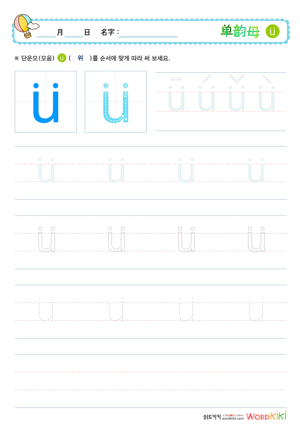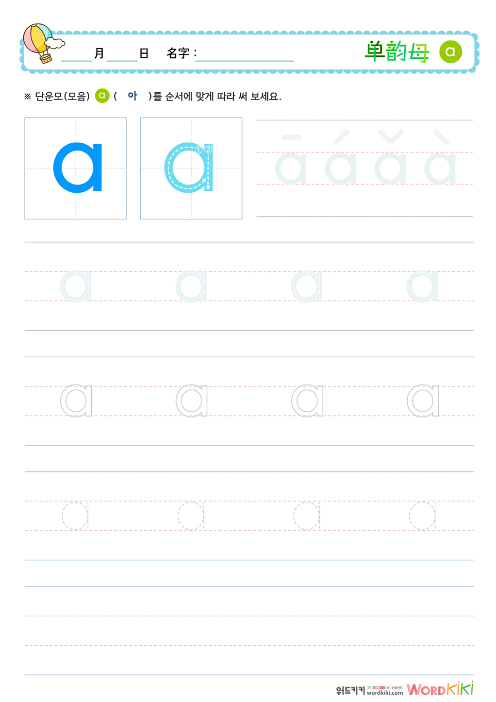 [한어병음쓰기 6장] 중국어 병음쓰기 – 단운모(a/o/e/i/u/ü)쓰기