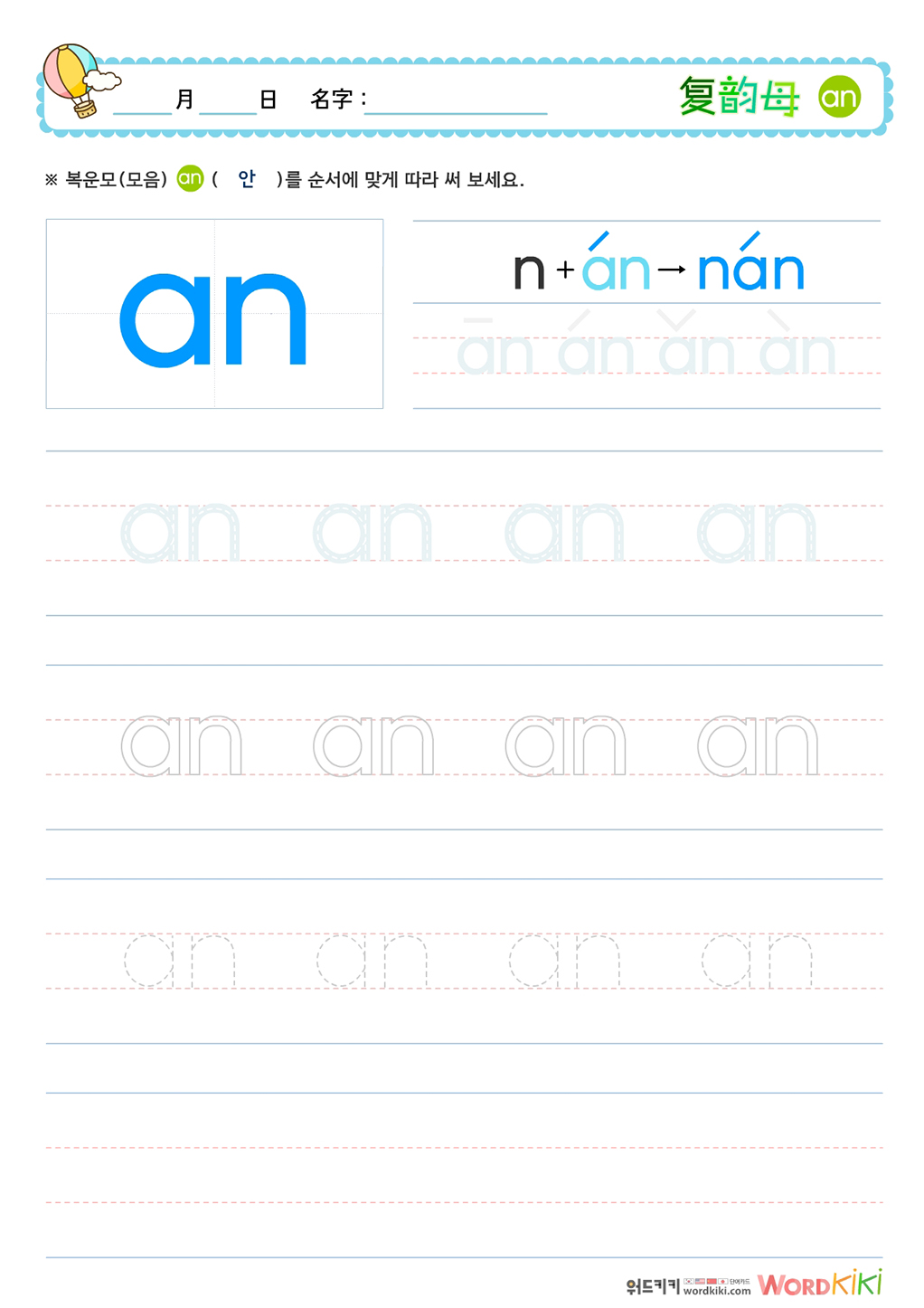 복운모(复韵母)쓰기 - an,en,in