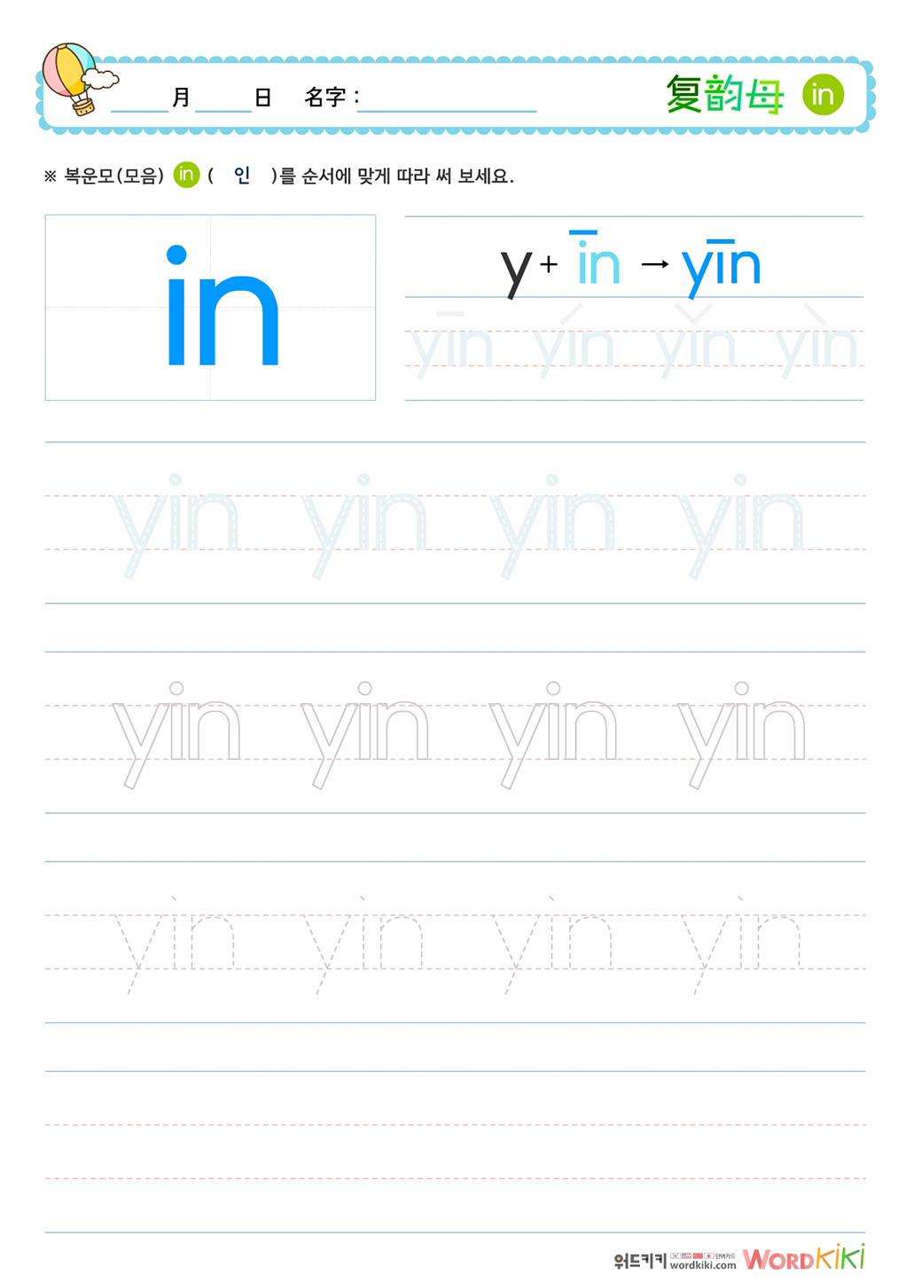 [한어병음쓰기 3장] 중국어 병음쓰기 – 복운모(an/en/in)쓰기