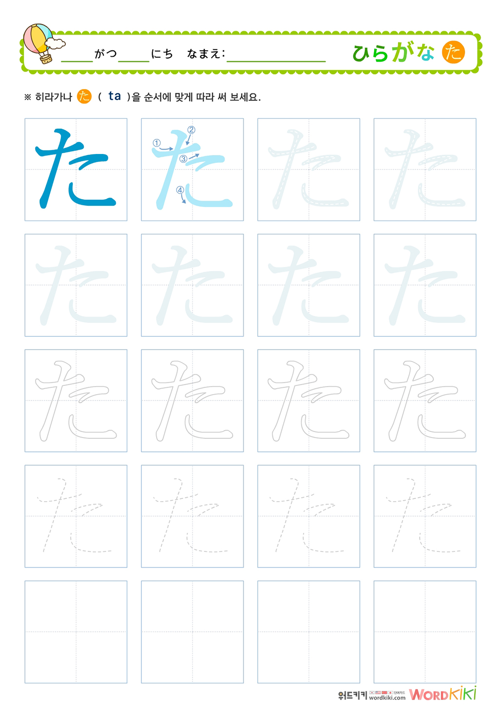 [히라가나 쓰기 5장] 히라가나 쓰기(타행) – Writing Hiragana た行