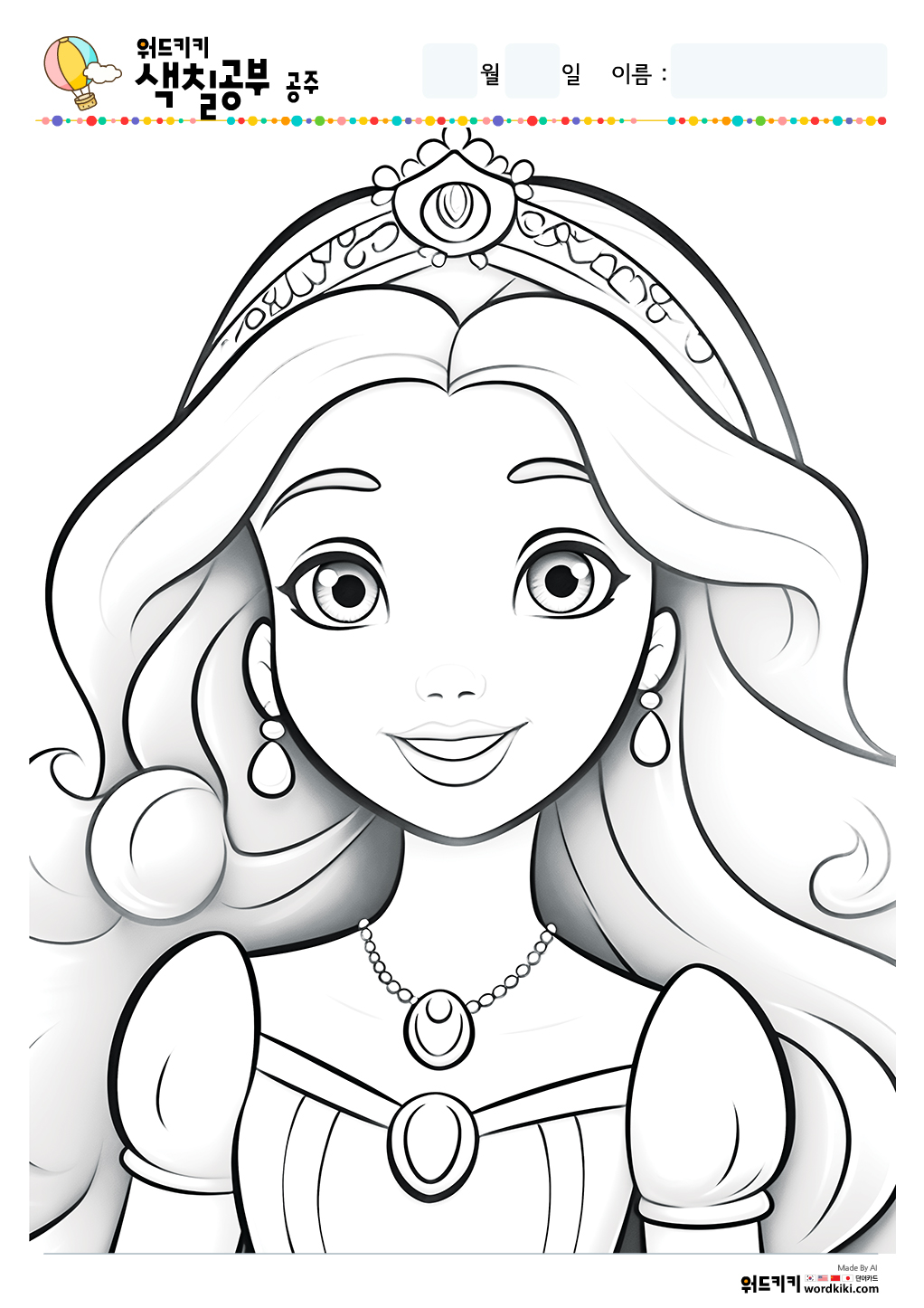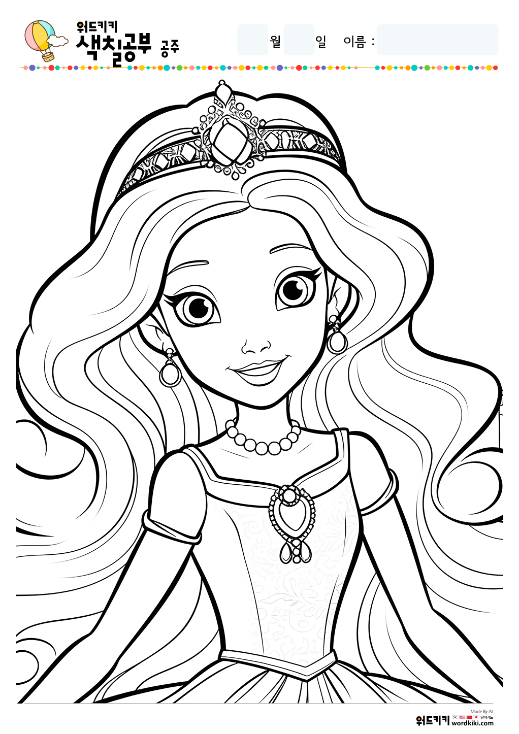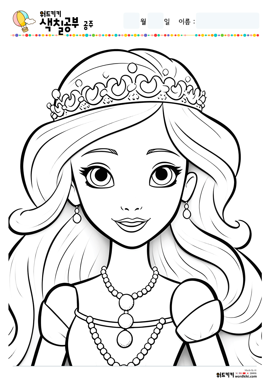 공주 색칠공부/공주 색칠/공주 색칠공부 도안/공주 색칠도안/공주 색칠하기/공주 색칠놀이/