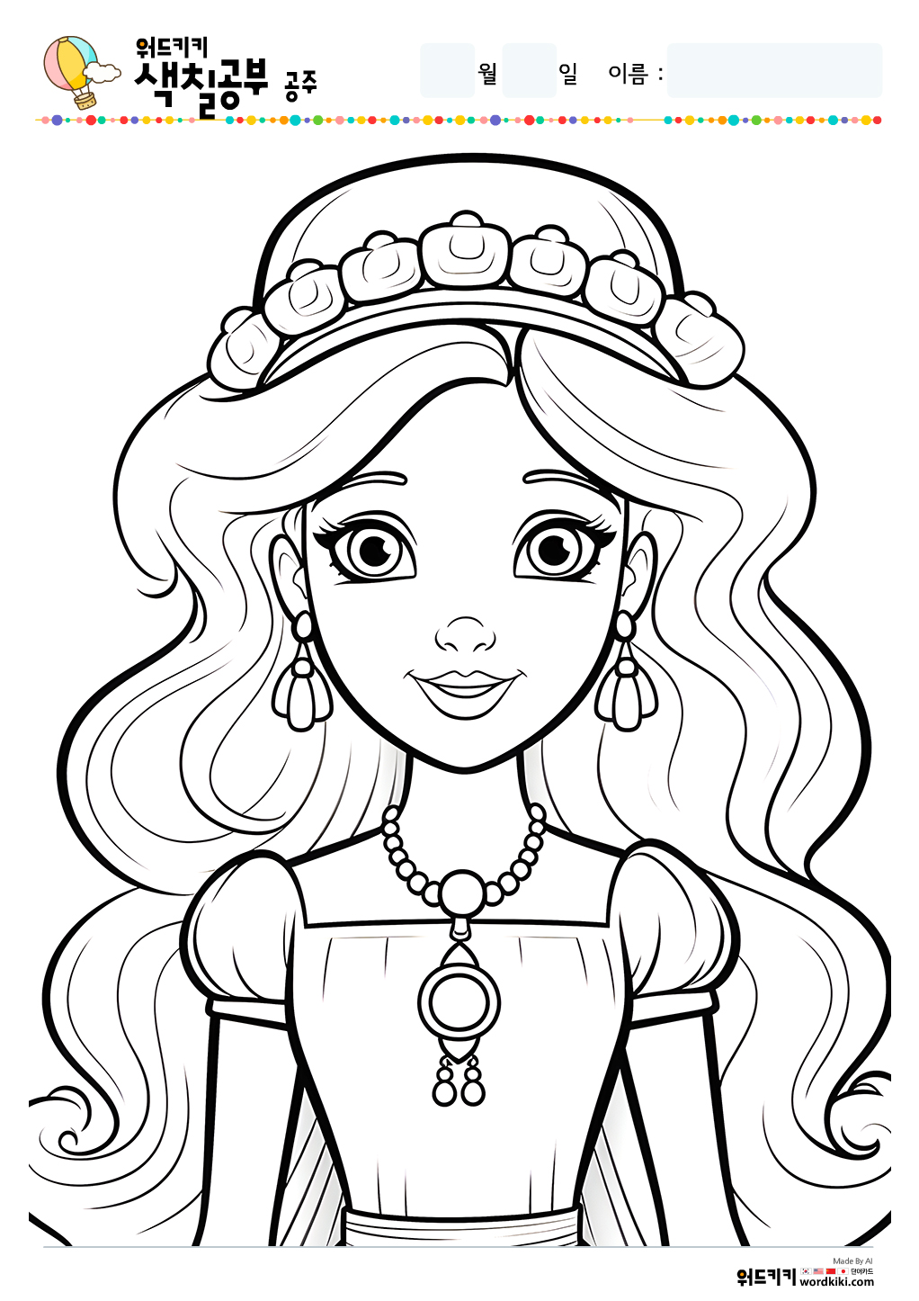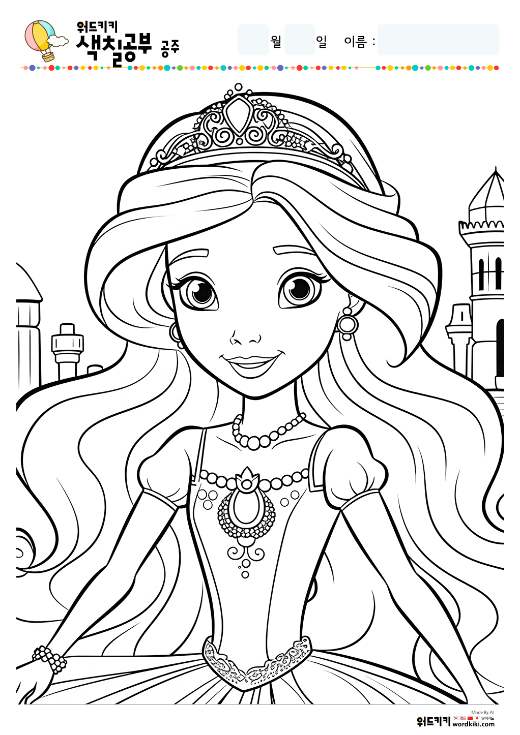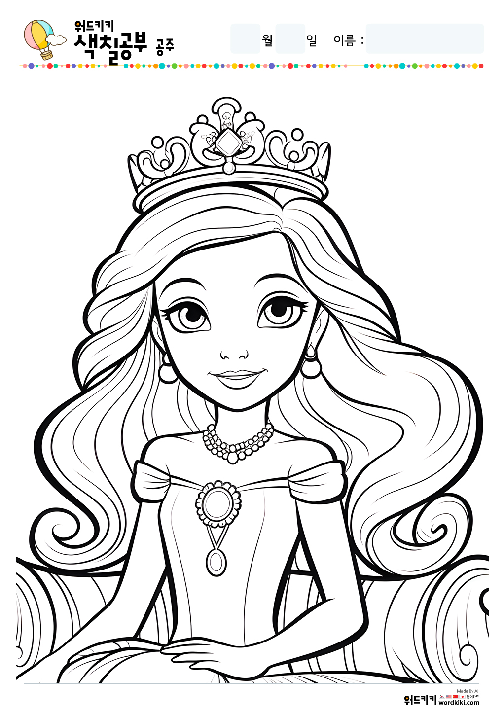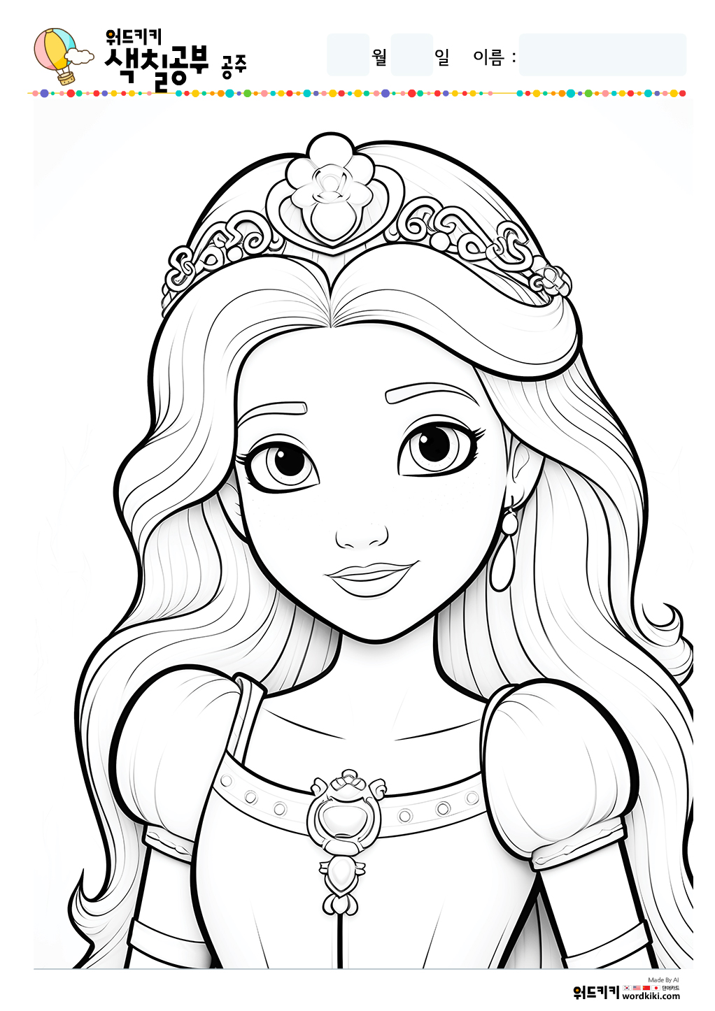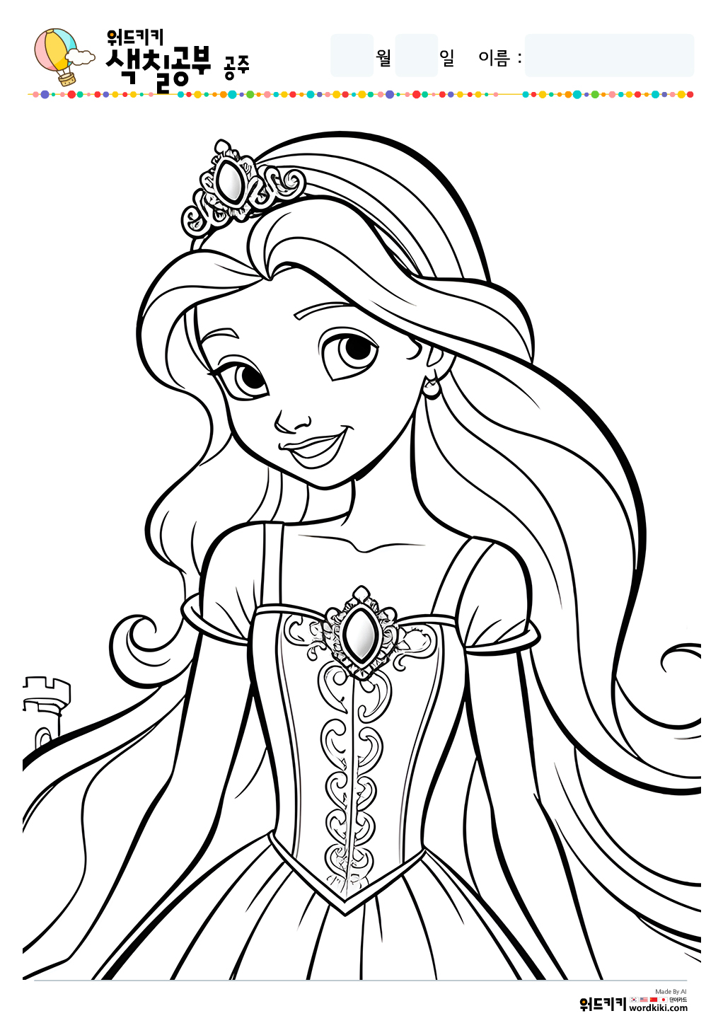 공주 색칠공부/공주 색칠/공주 색칠공부 도안/공주 색칠도안/공주 색칠하기/공주 색칠놀이/