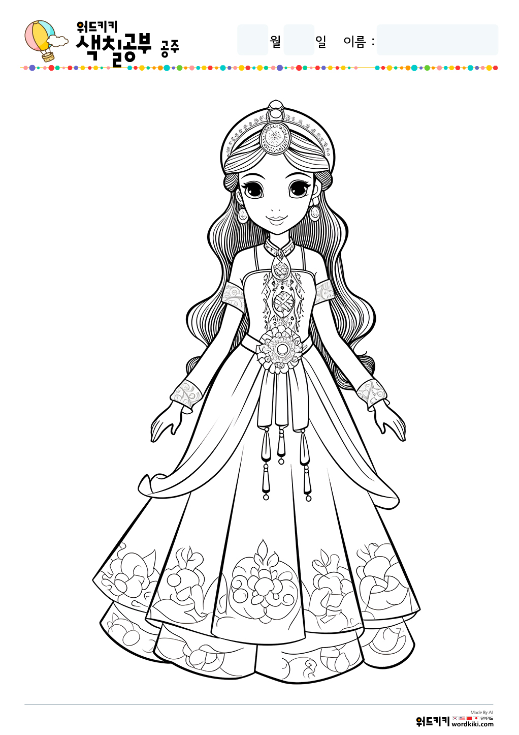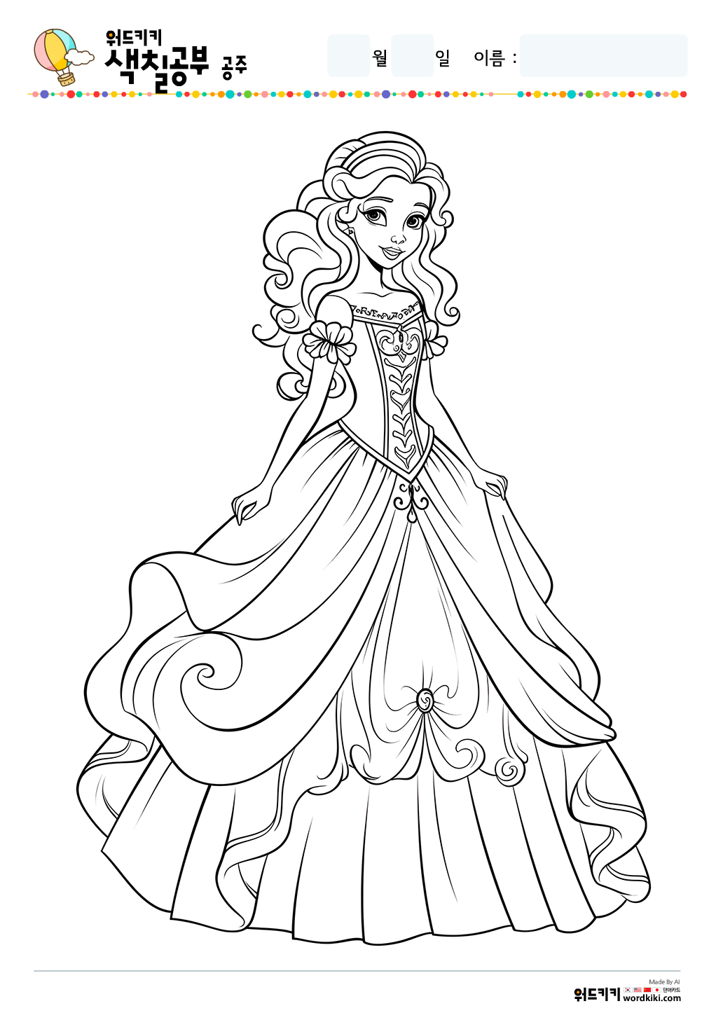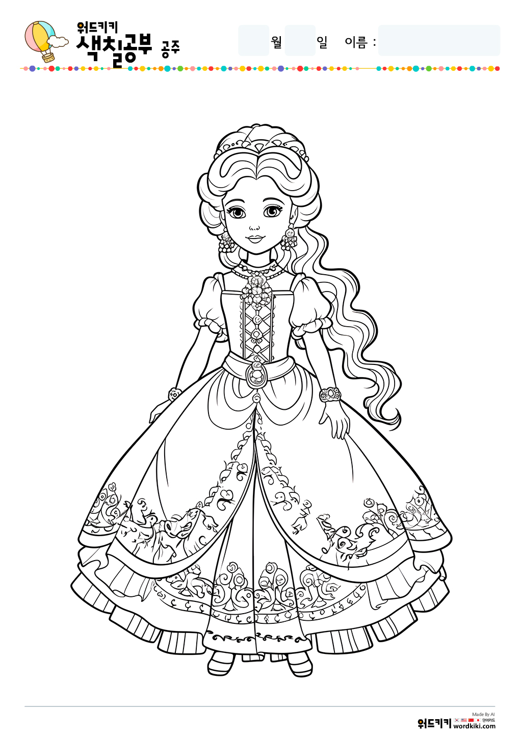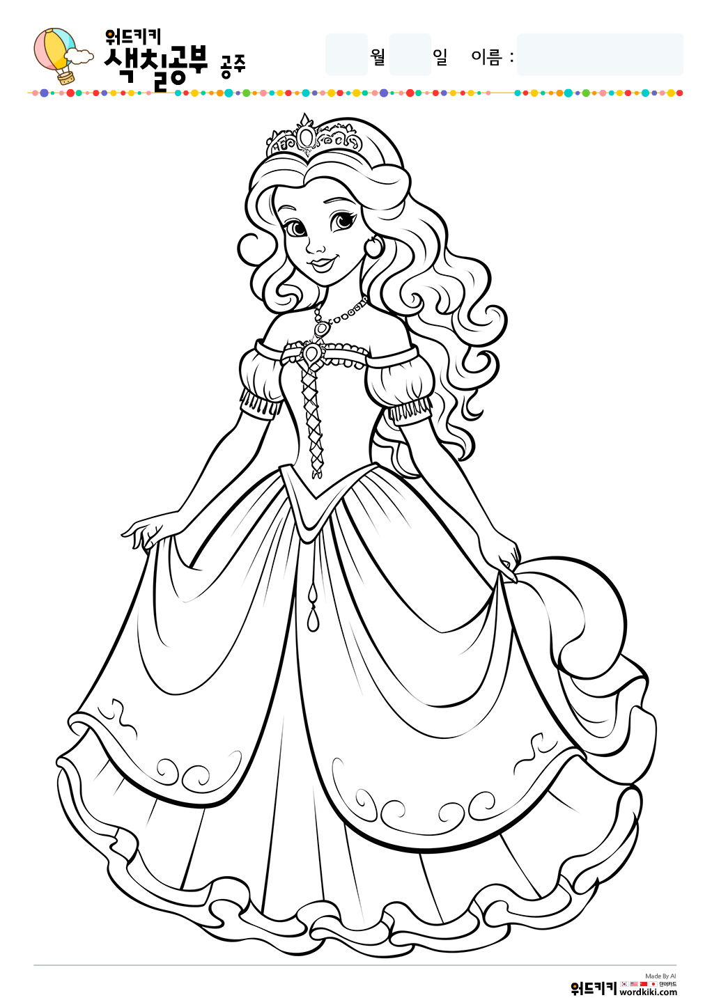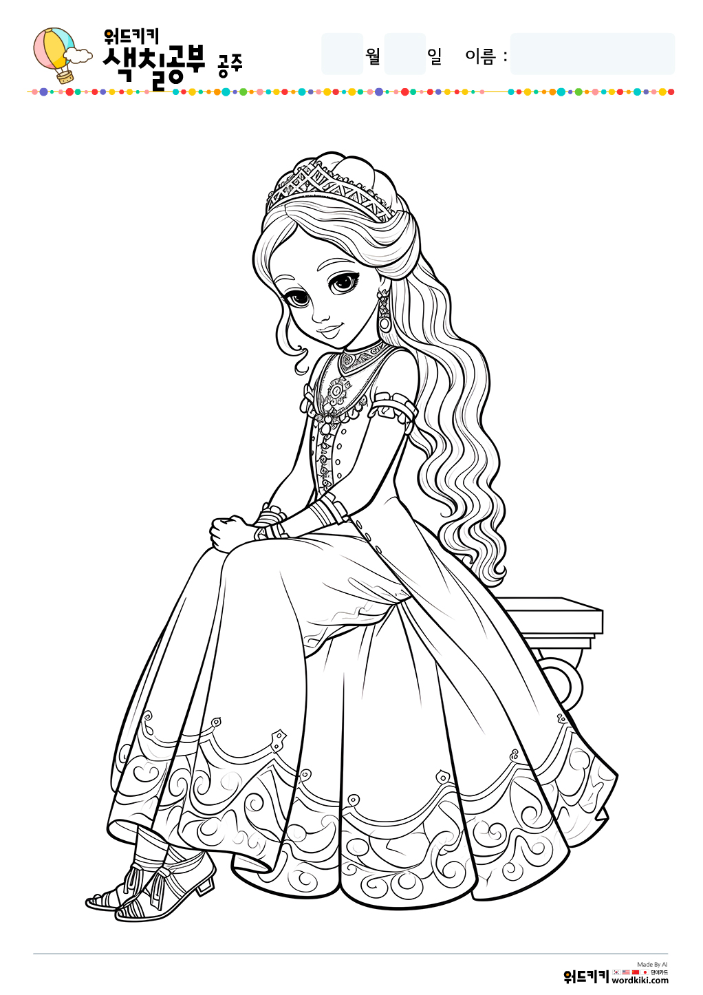공주 색칠공부 도안 무료프린트 자료실