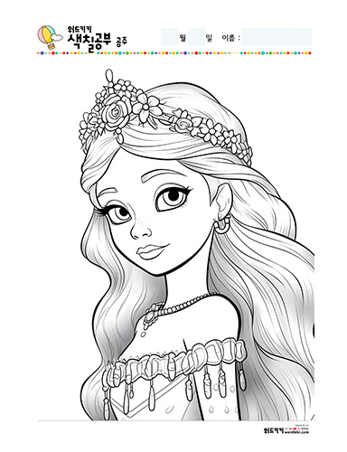 공주 색칠공부/공주 색칠/공주 색칠공부 도안/공주 색칠도안/공주 색칠하기/공주 색칠놀이/