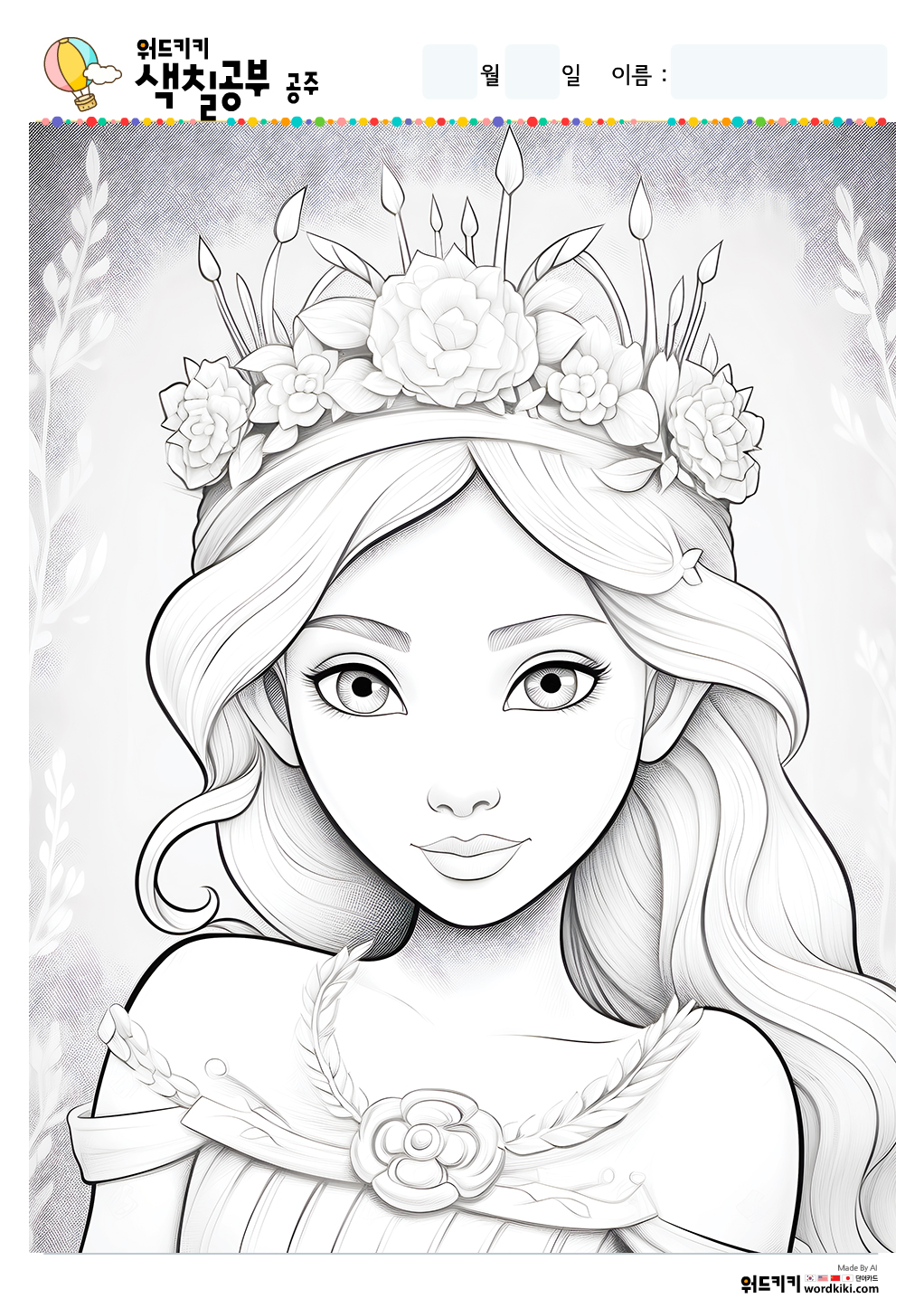 공주 컬러링 도안입니다.
