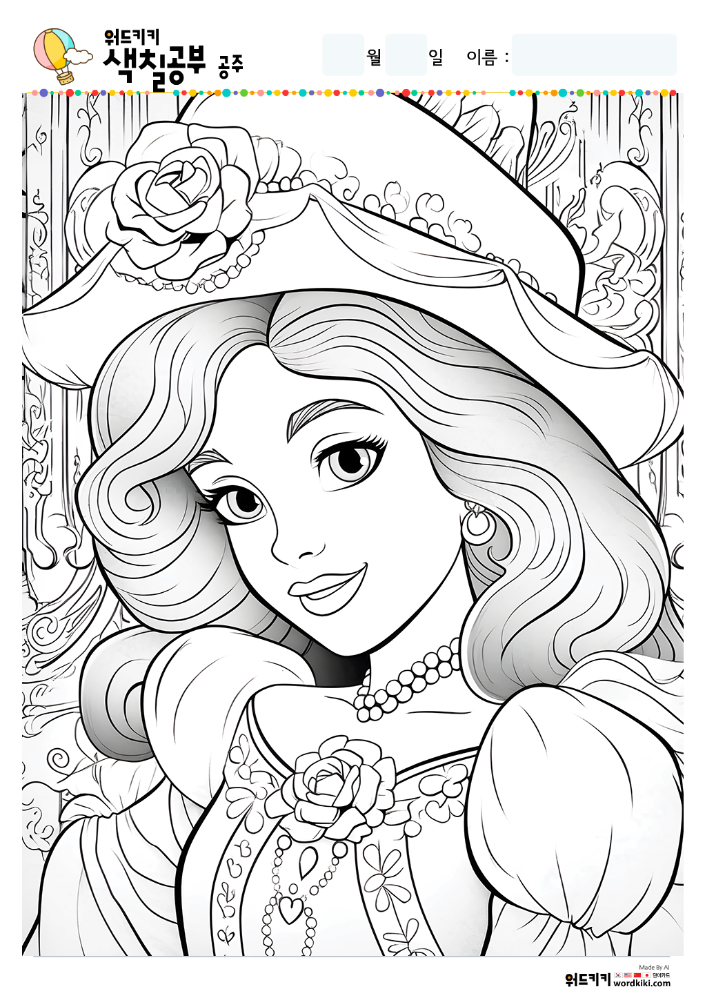 공주 색칠공부/공주 색칠/공주 색칠공부 도안/공주 색칠도안/공주 색칠하기/공주 색칠놀이/