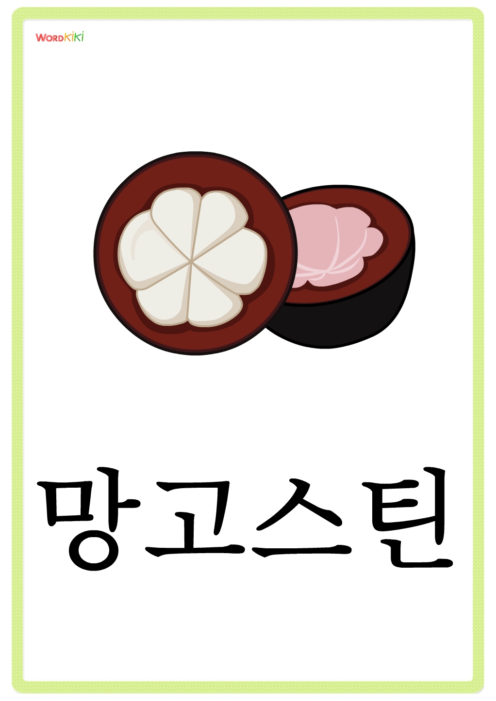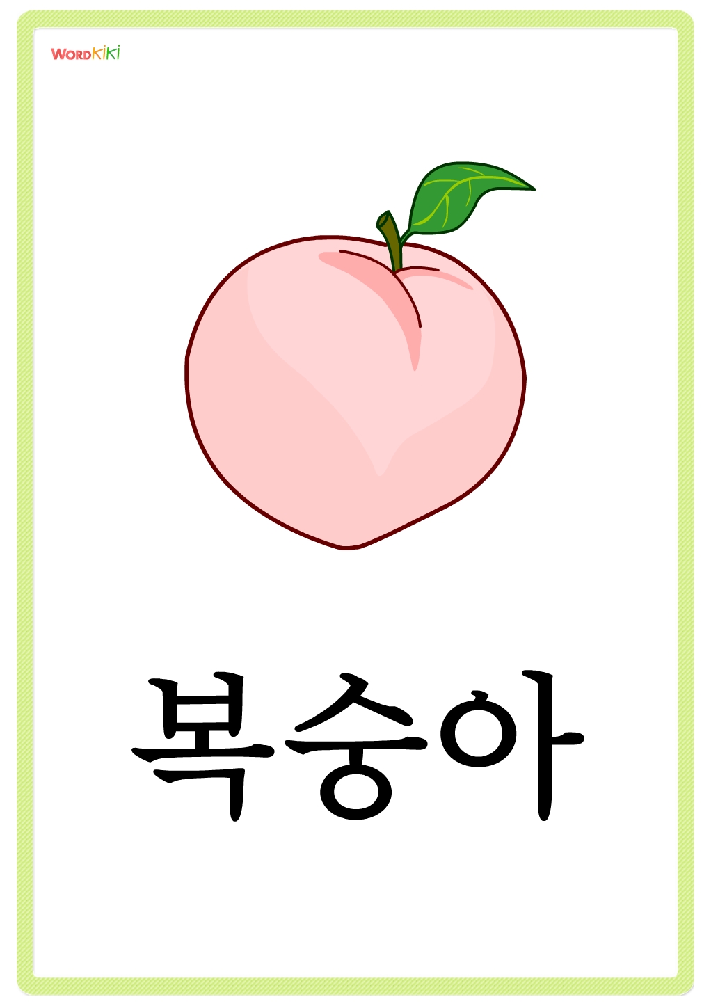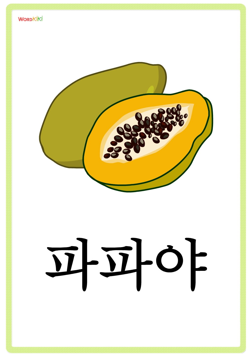 과일낱말카드 사과,수박,포도,딸기,귤,배,바나나,복숭아,레몬,감,파인애플,오렌지,멜론,자두,키위,참외,체리,라임,블루베리,석류,망고,코코넛,망고스틴,파파야 단어카드입니다.