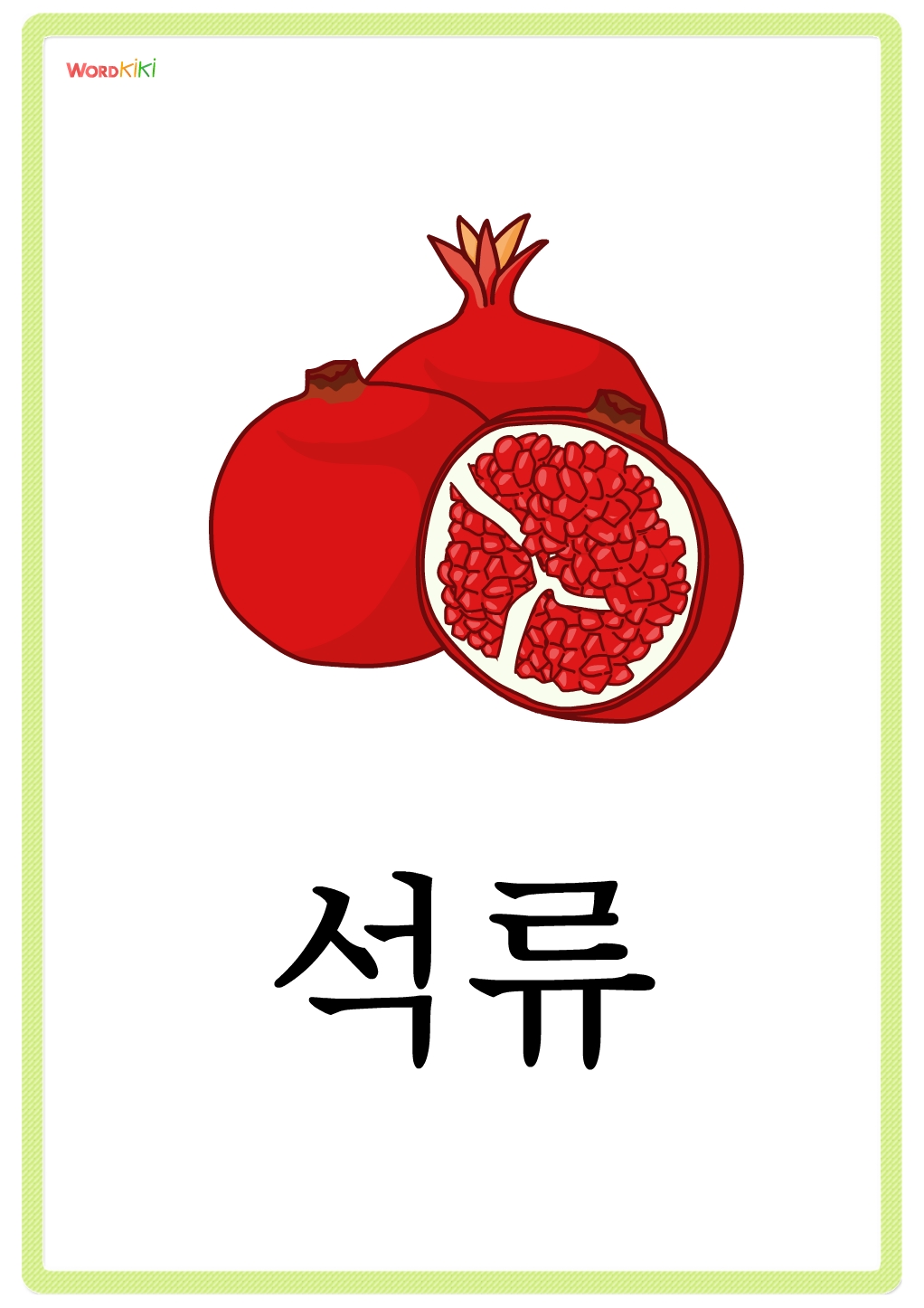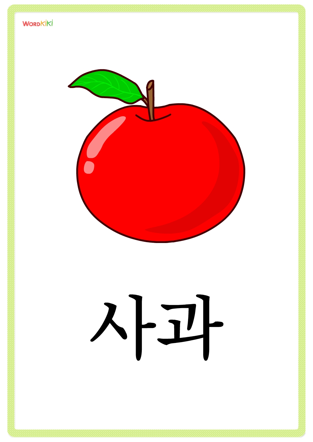 과일낱말카드 사과,수박,포도,딸기,귤,배,바나나,복숭아,레몬,감,파인애플,오렌지,멜론,자두,키위,참외,체리,라임,블루베리,석류,망고,코코넛,망고스틴,파파야 단어카드입니다.