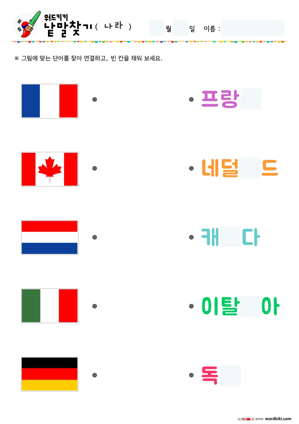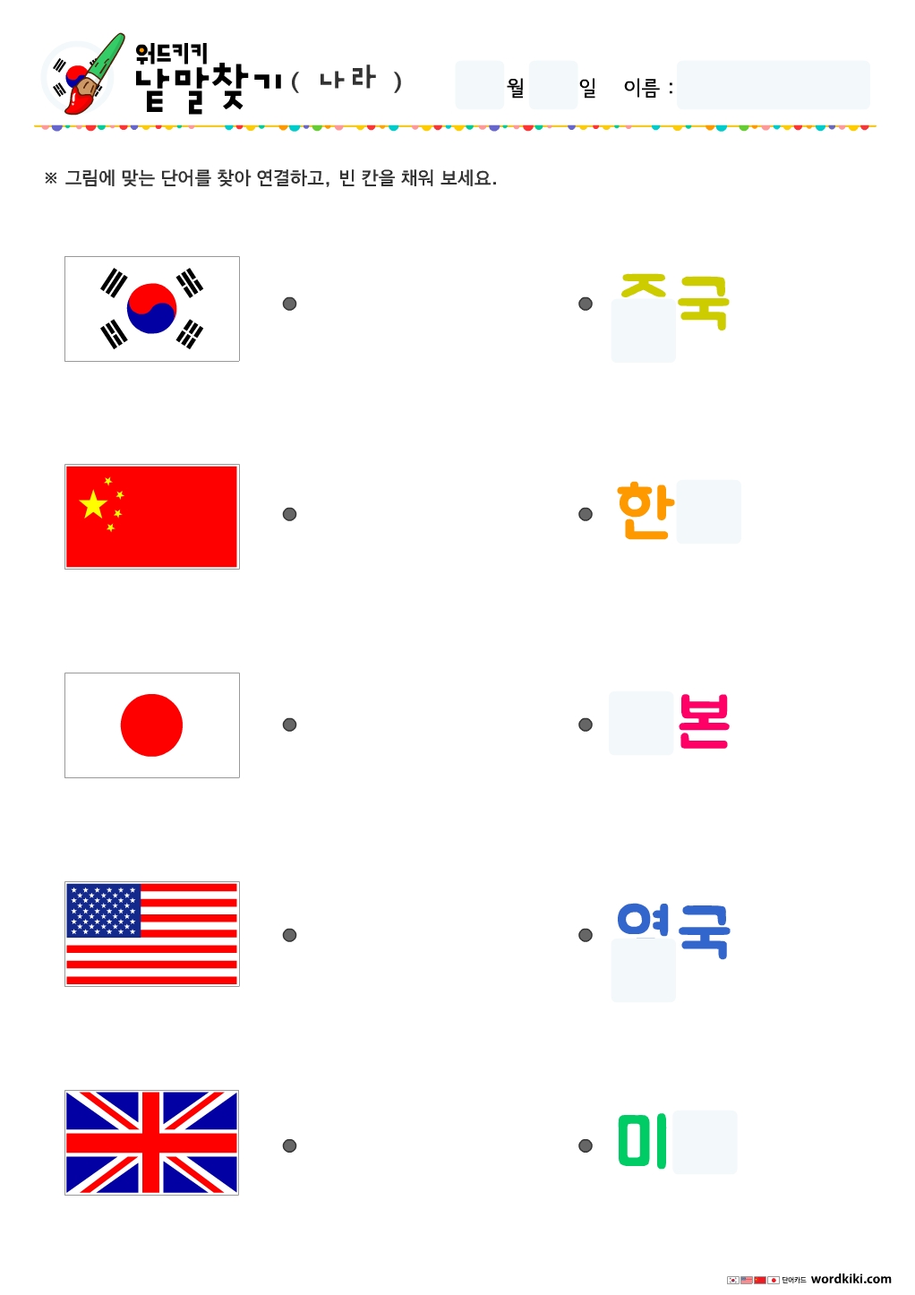나라낱말연결하기, 국기낱말그림연결하기