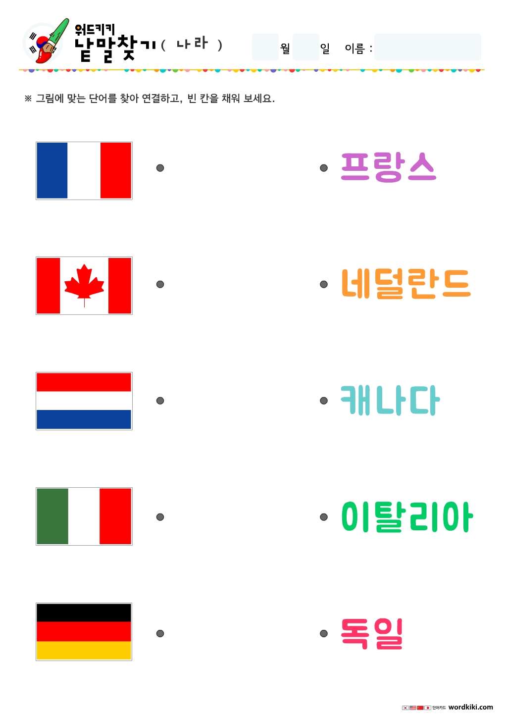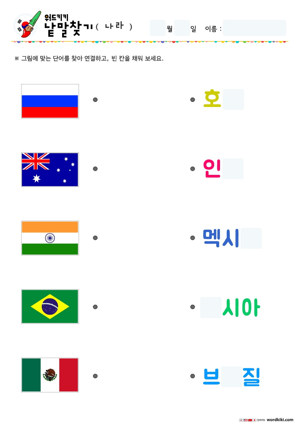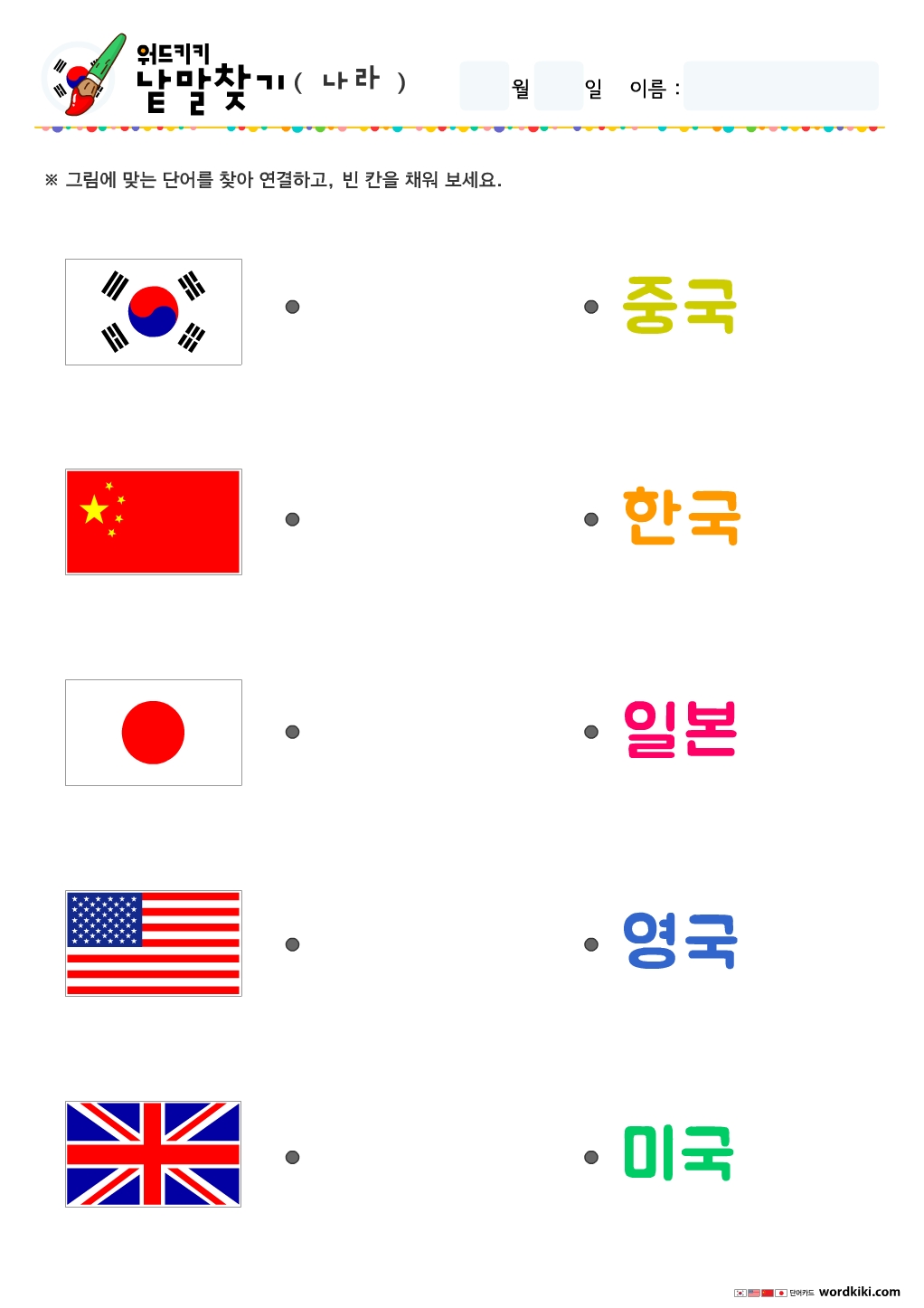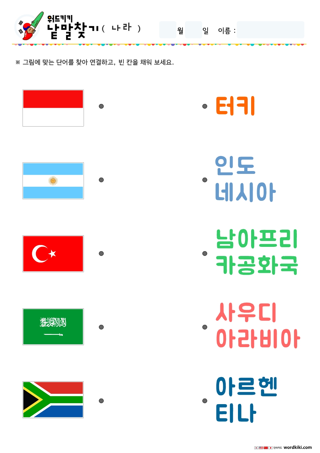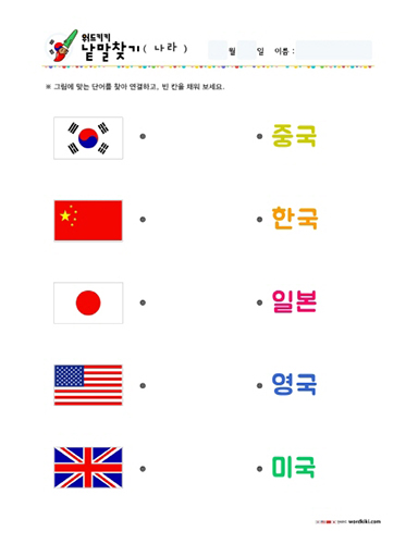 나라낱말연결하기, 국기낱말그림연결하기