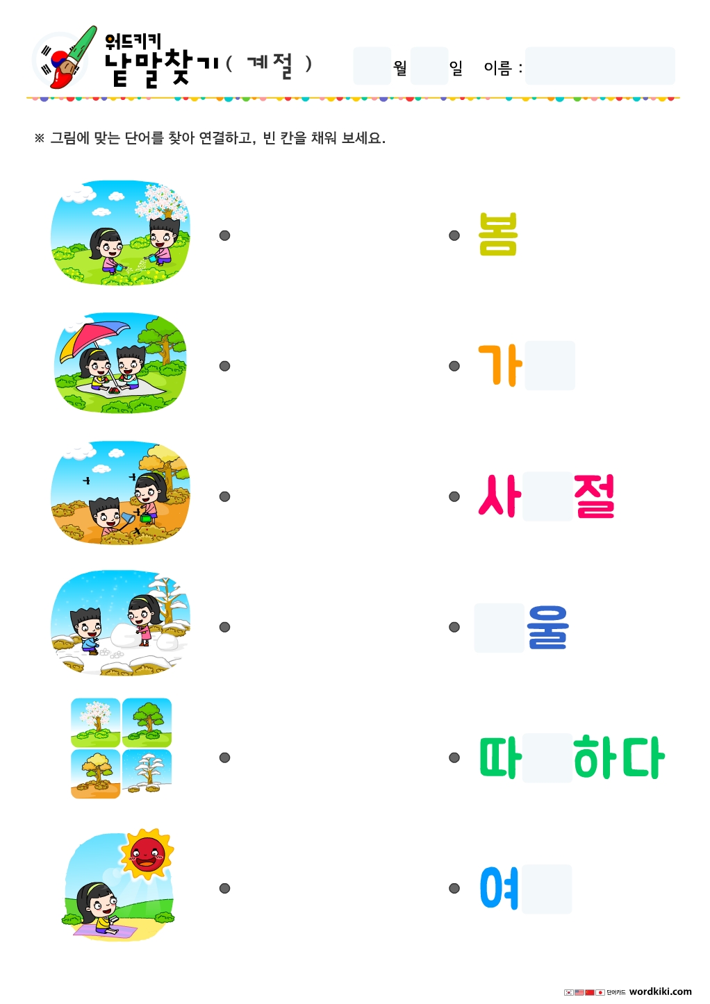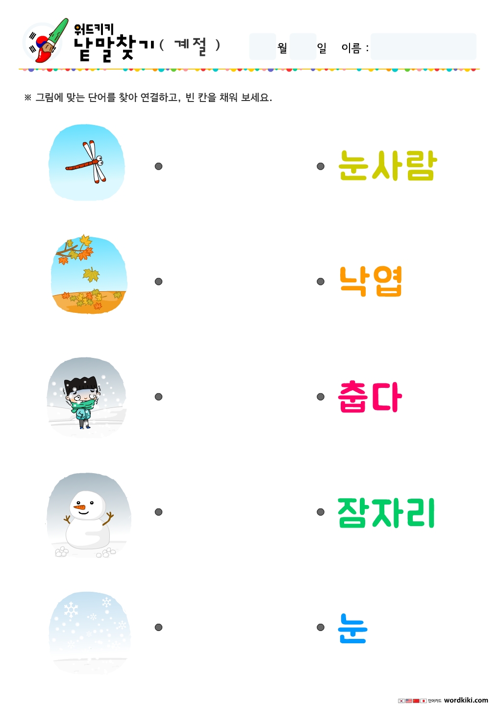 [유아한글공부 6장] 09 계절 - 한글낱말 그림연결하기