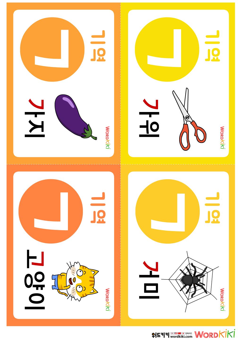 [키즈키키 자음카드 3장] 01 한글자음송 ㄱ – 기역송 단어카드, 단어 프린트 자료