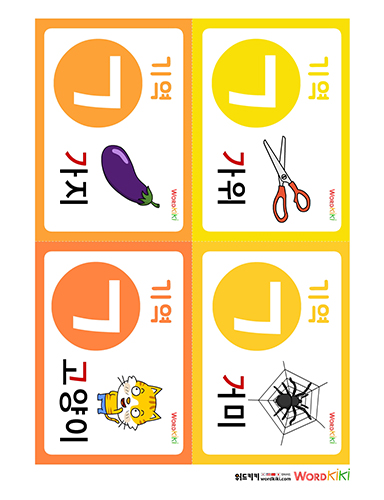 자음송 기역단어카드 (플래시카드)를 프린트 후