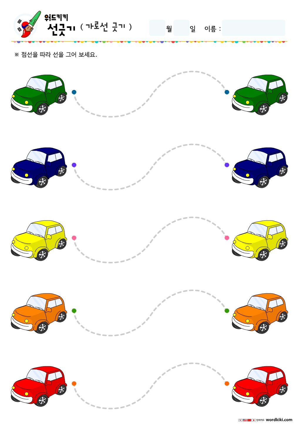 아이들과 함께크레파스나, 색연필등을 이용해 점선을 따라 선을 그리며