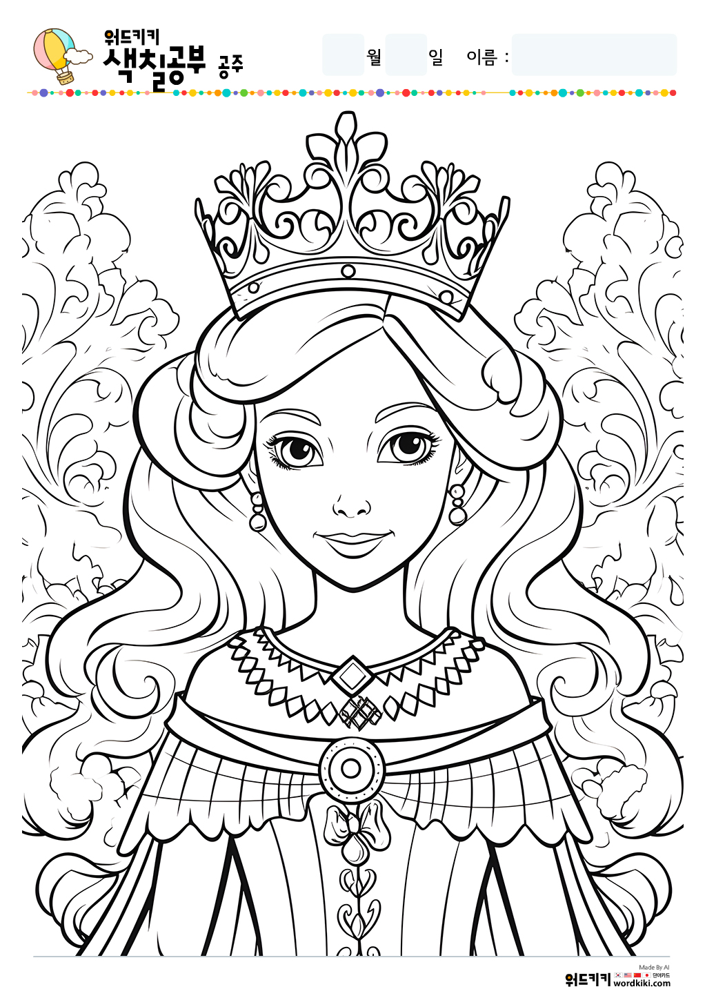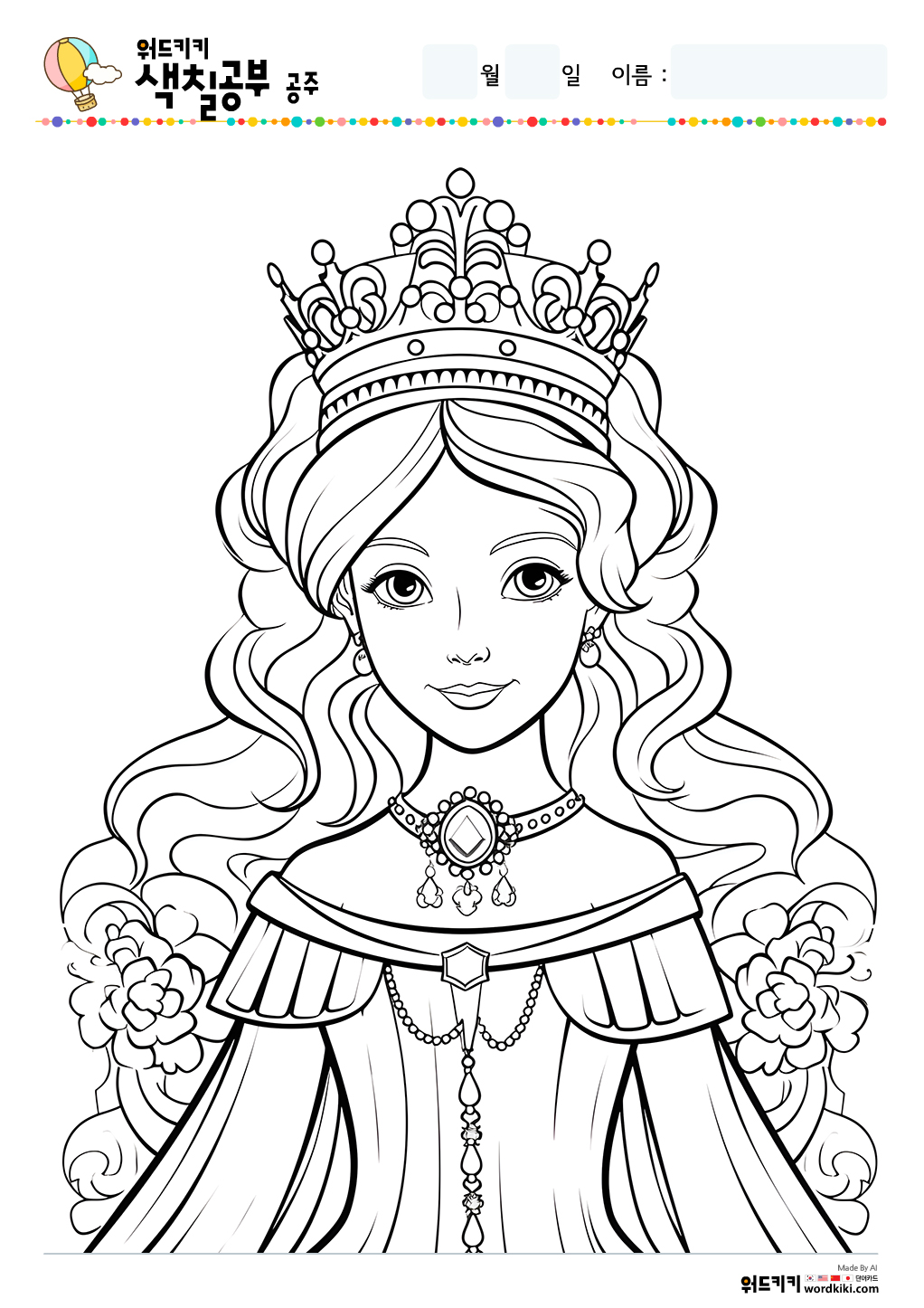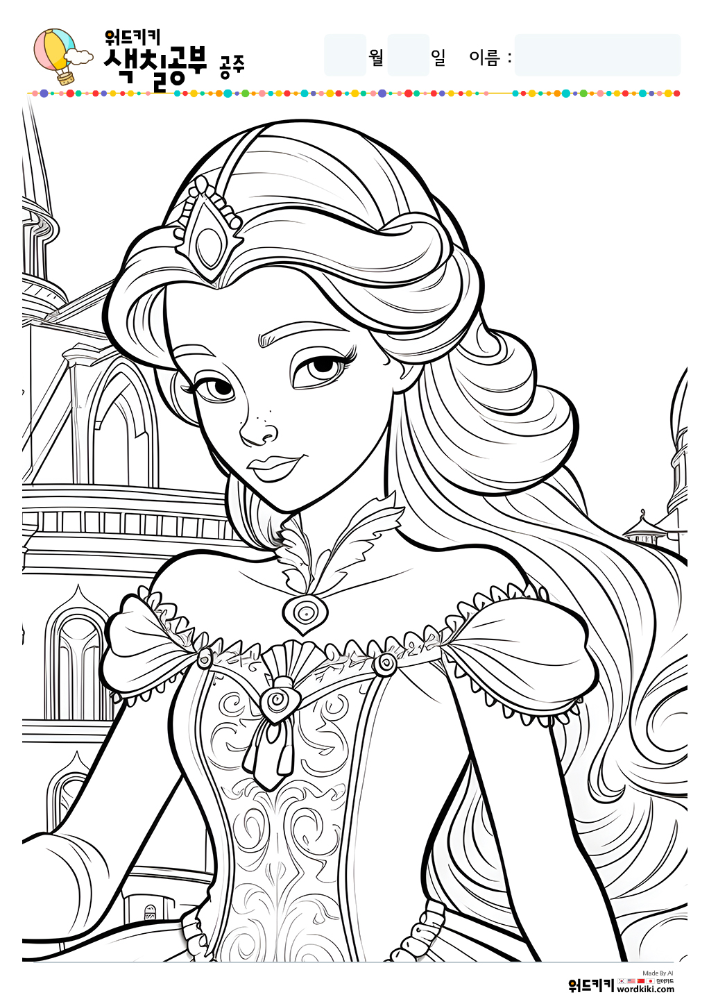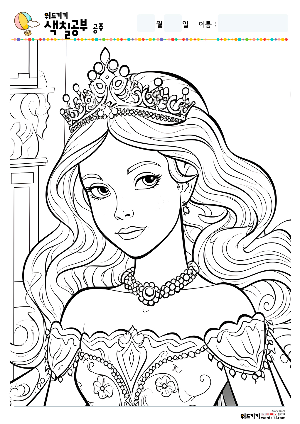 공주 색칠공부 도안 무료프린트 자료실