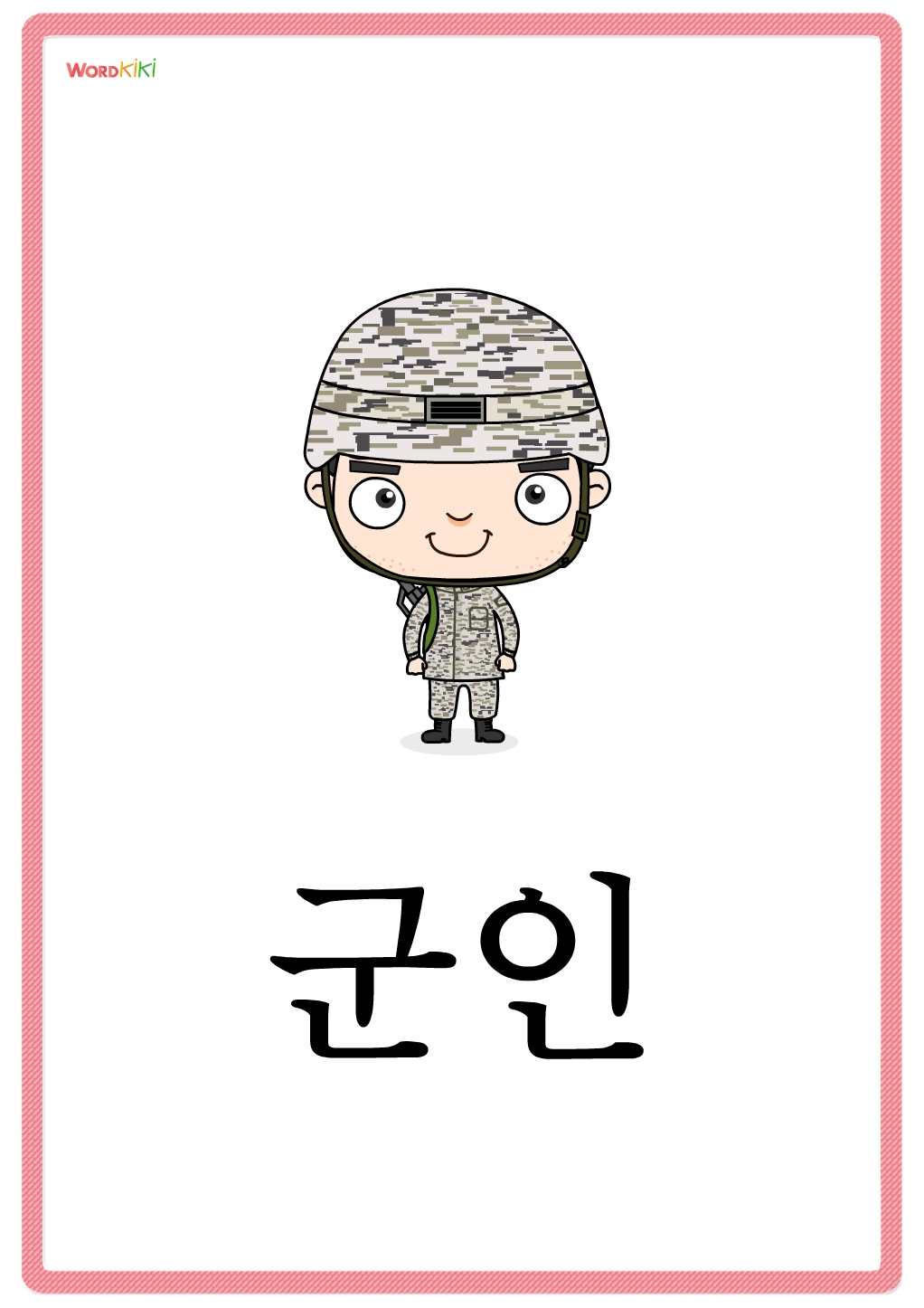 우리 아이 첫 한글 단어카드 중 직업 테마로 직업에 관련된 단어를 배울 수 있습니다.