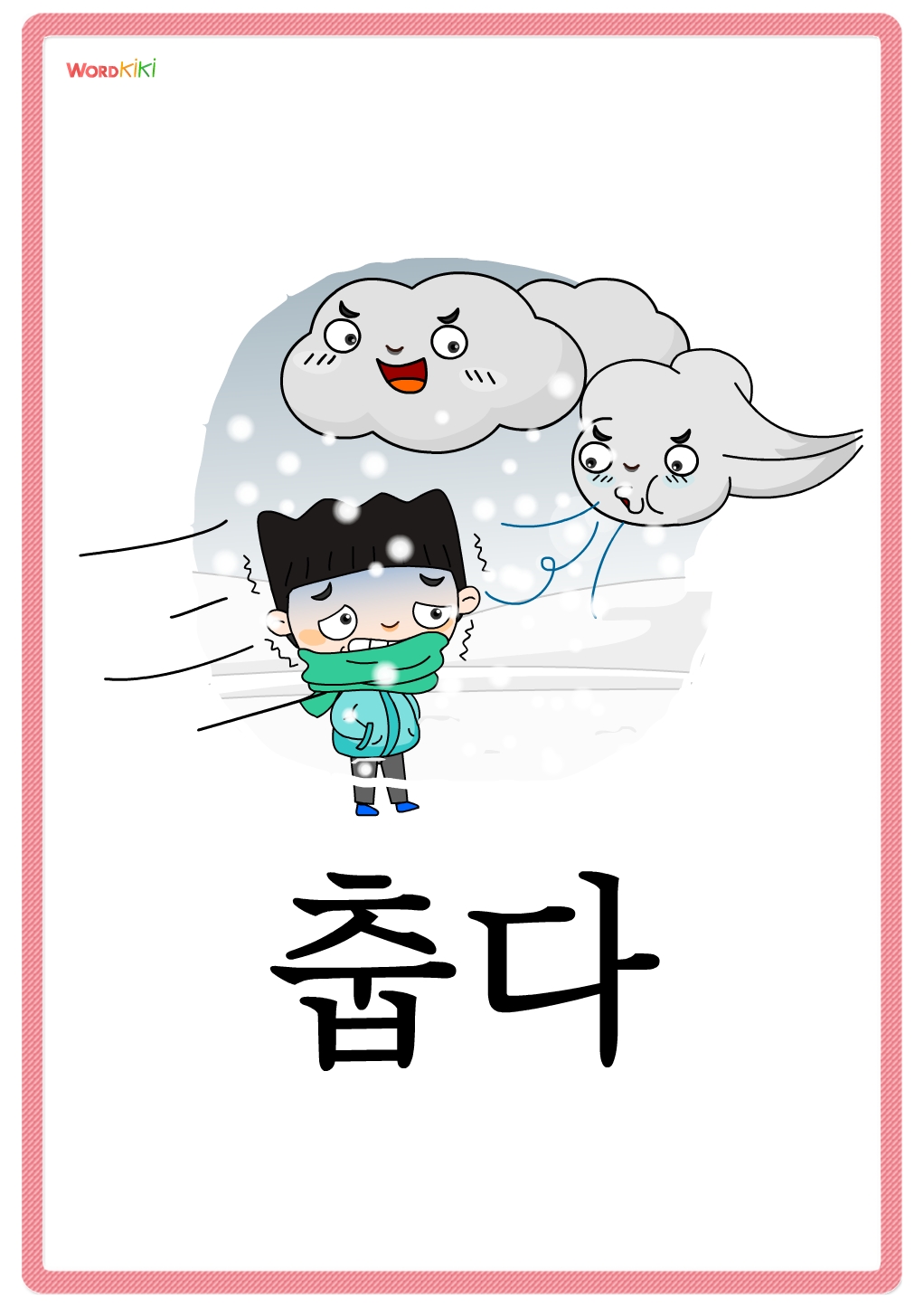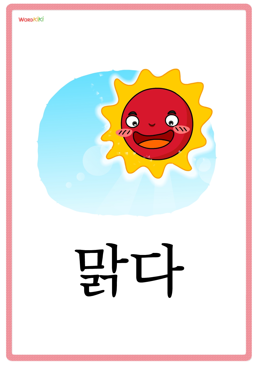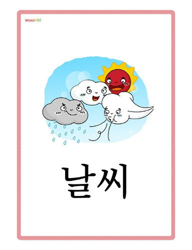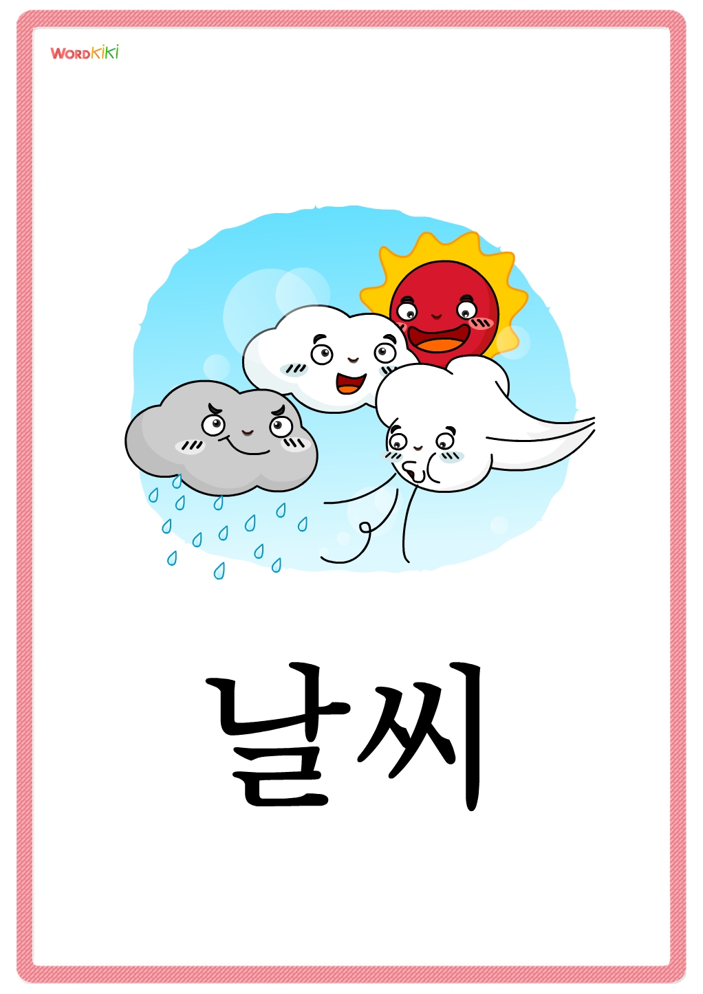 날씨,맑다,흐리다,비,눈,바람,춥다,덥다,따뜻하다,시원하다