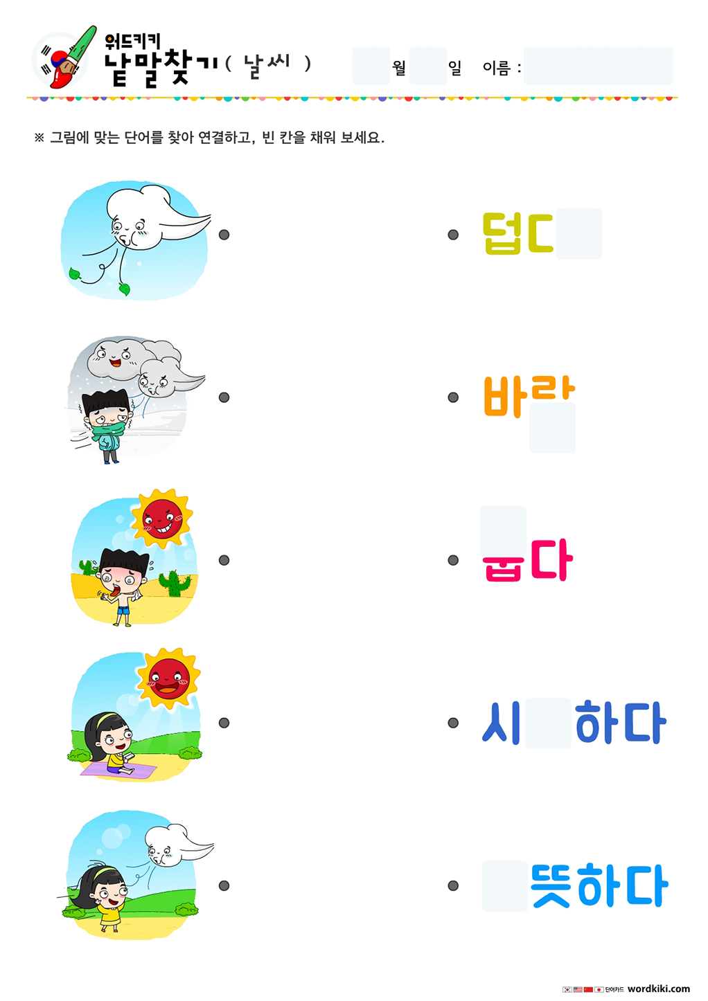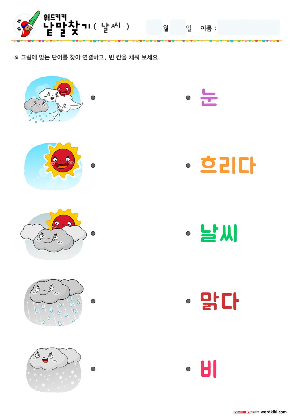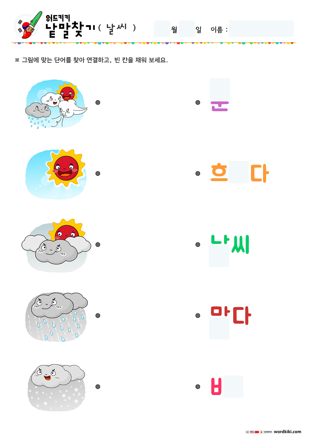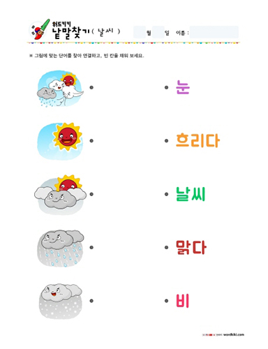 [한글 활동지 4장] 12 날씨 단어연결하기
