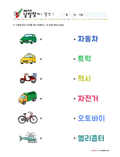 탈것(교통수단) 그림을 보고 맞는 단어를 찾아 선으로 연결해 주세요!!