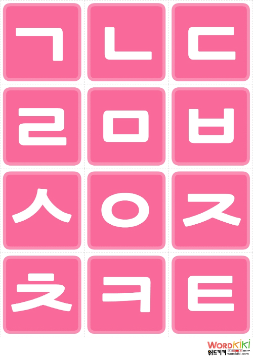 [자음/모음 4장] 한글 자음카드 사각형