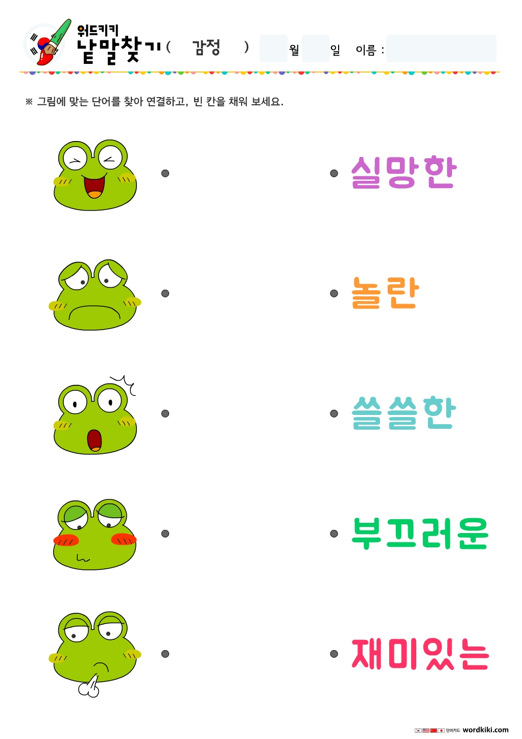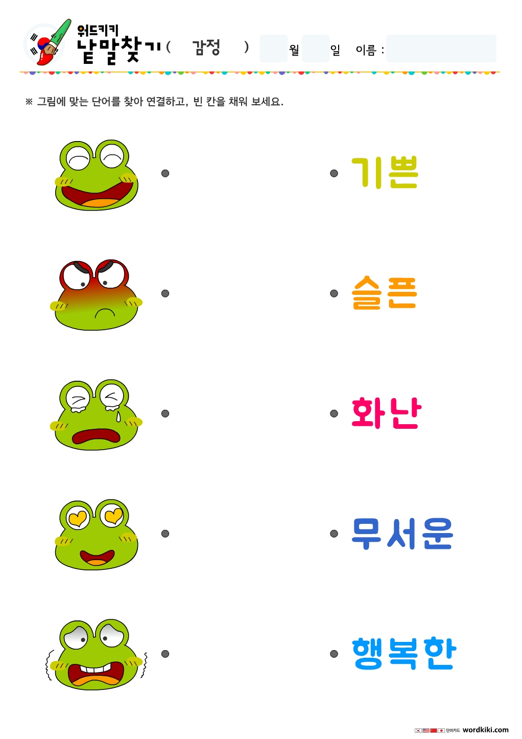 감정 그림과 맞는 단어를 찾아 선으로 연결해 주세요!!