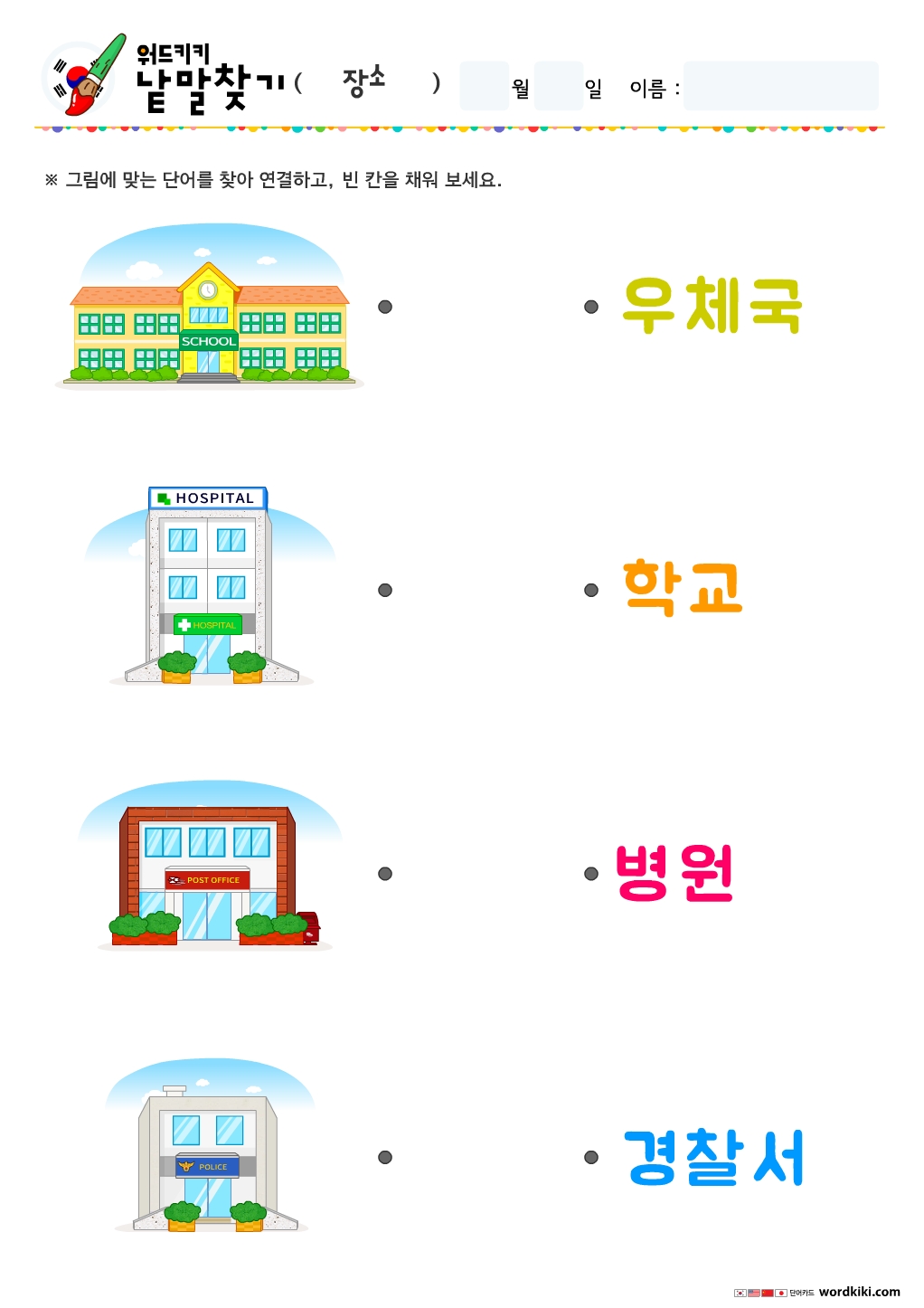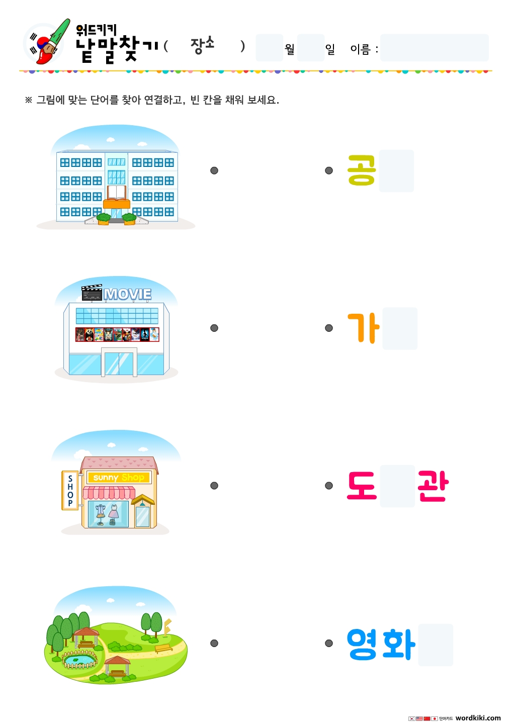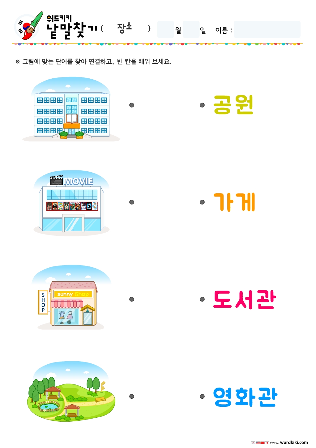 장소와 맞는 단어를 찾아 선으로 연결해 주세요.