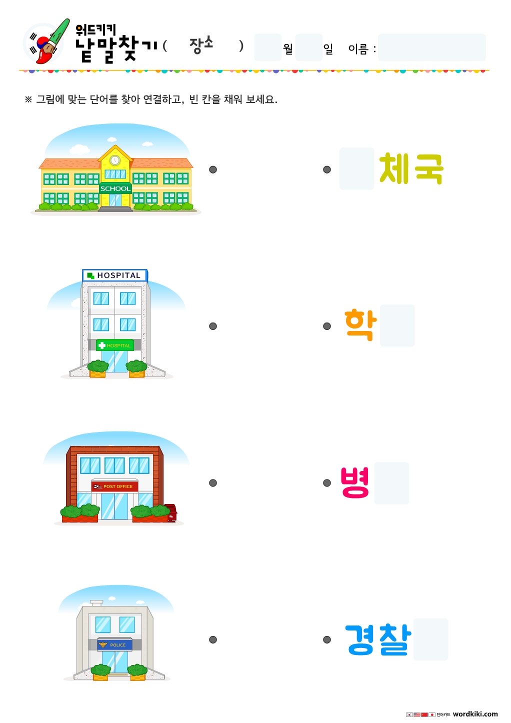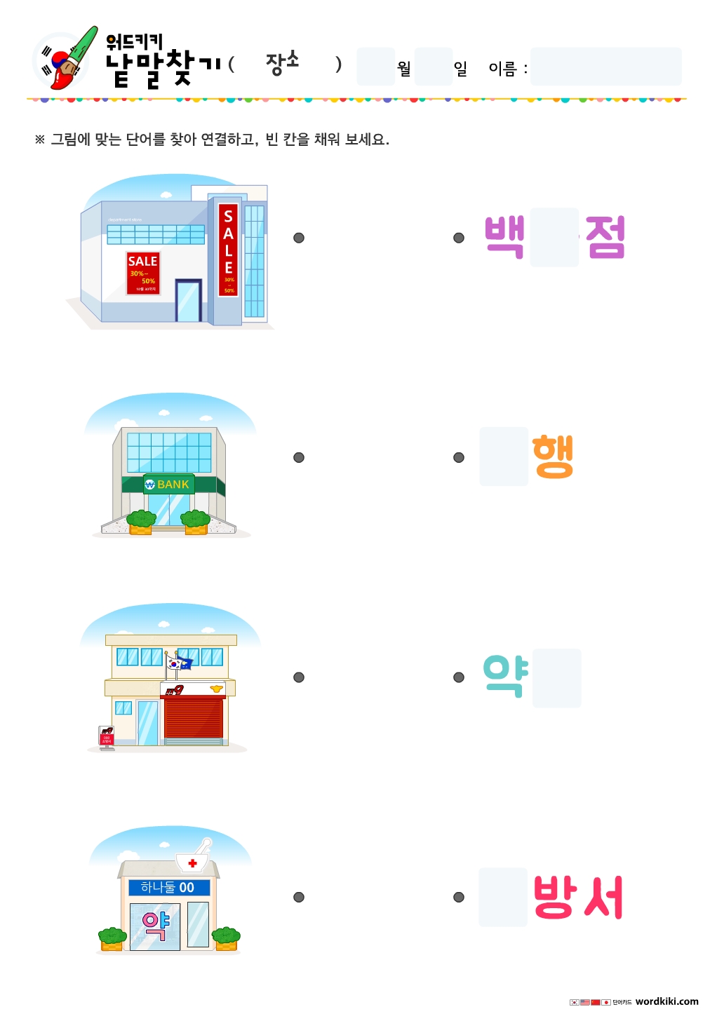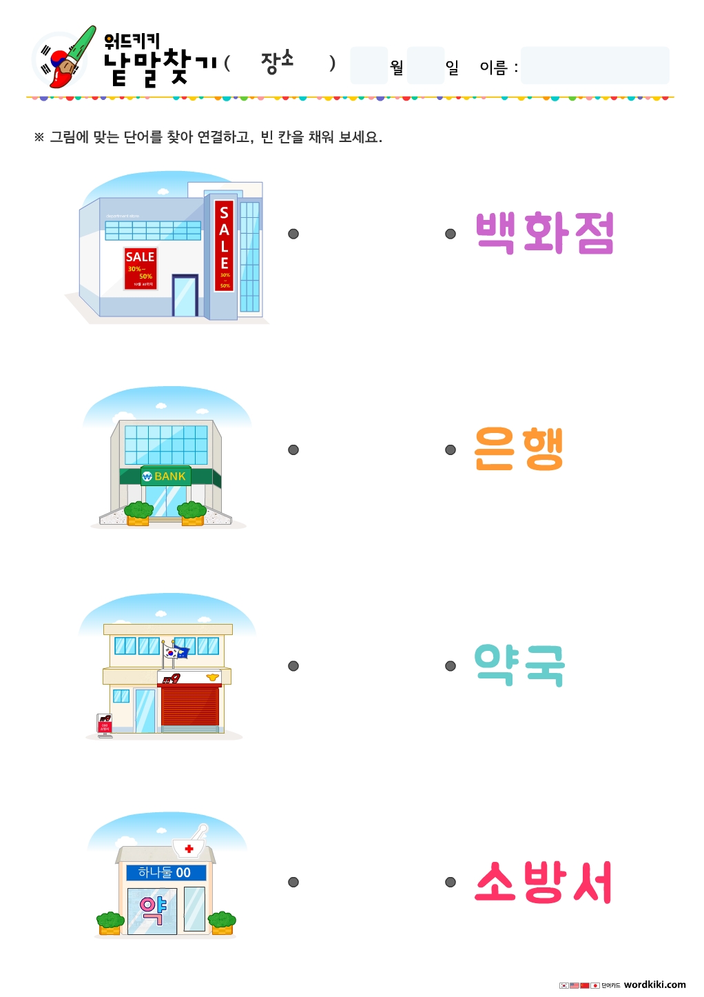 장소와 맞는 단어를 찾아 선으로 연결해 주세요.