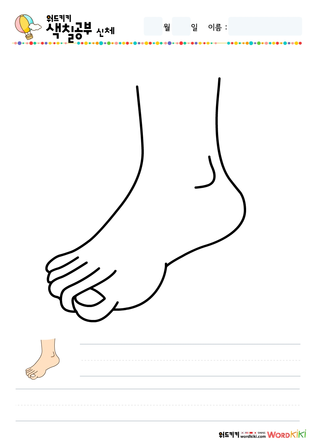 원하는 색칠공부 그림을 선택 후 A4용지에 프린트 해서예쁘게 색칠하고, 그림에 맞는 단어도 써 보세요. hand,chest,belly,navel,leg,thigh,knee,foot,front body