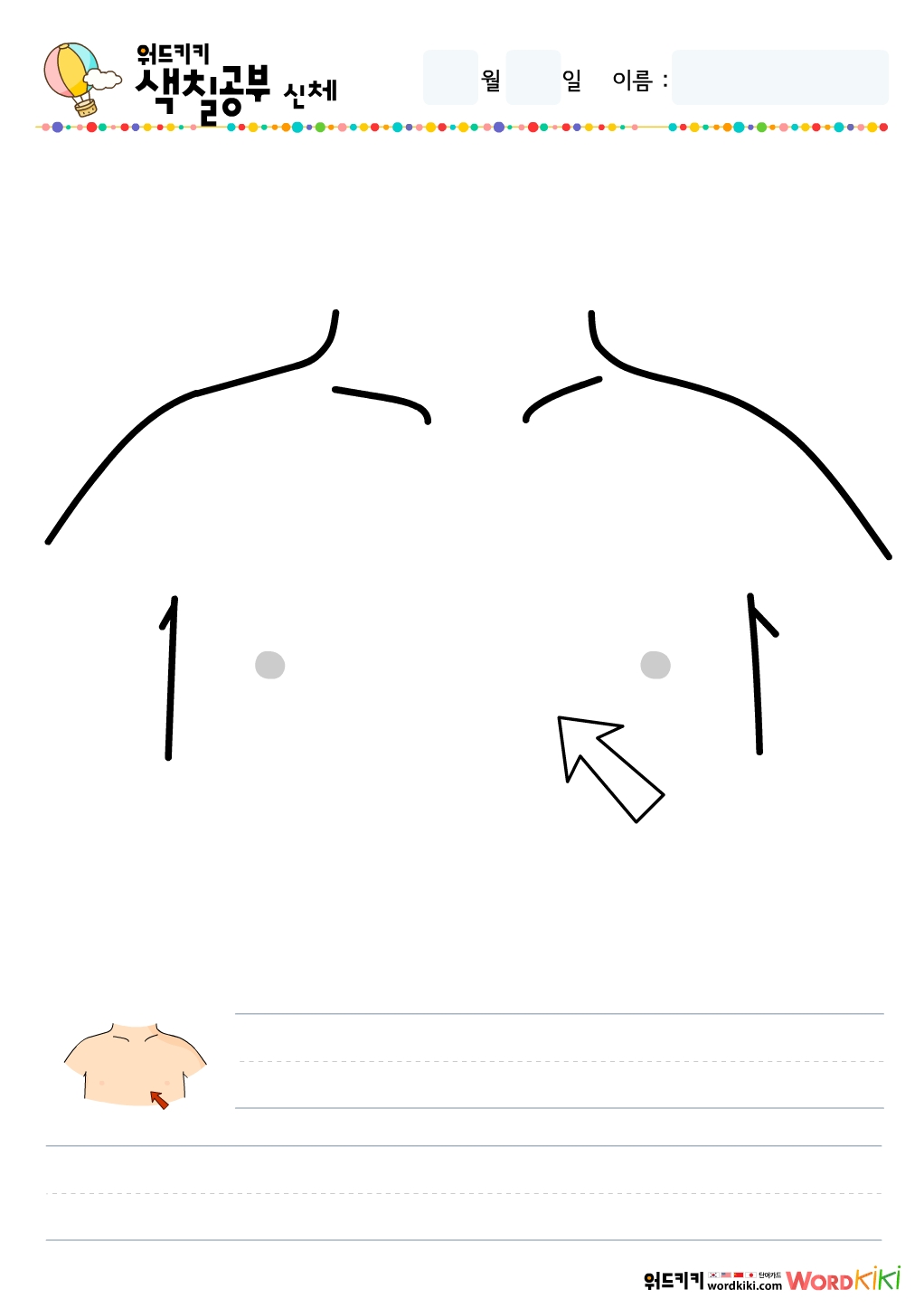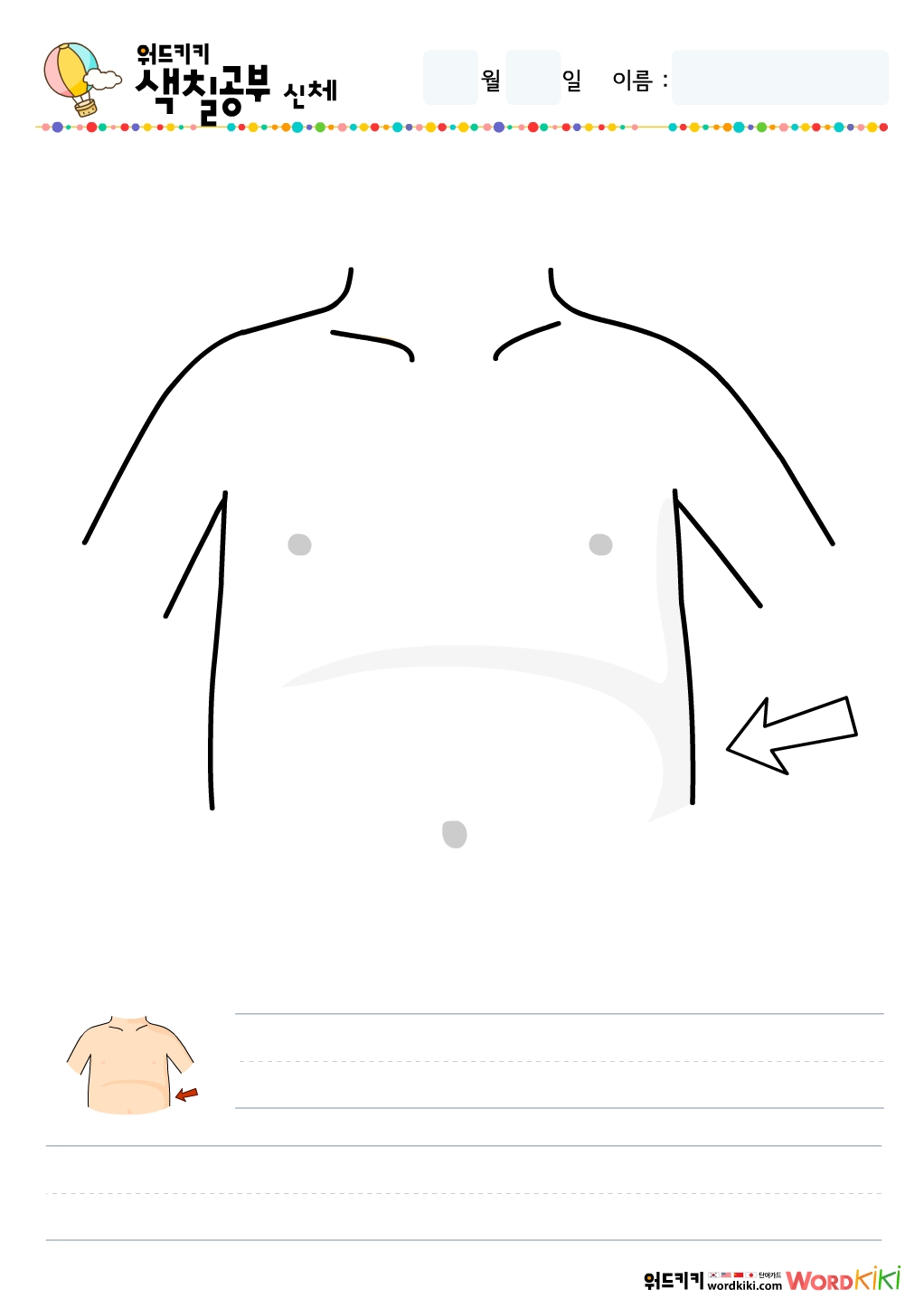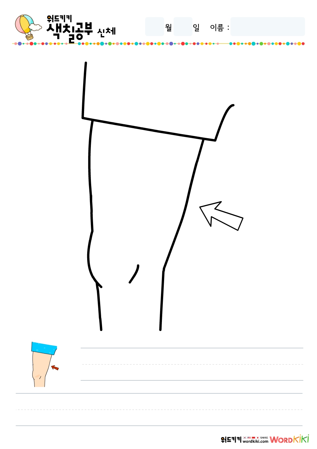원하는 색칠공부 그림을 선택 후 A4용지에 프린트 해서예쁘게 색칠하고, 그림에 맞는 단어도 써 보세요. hand,chest,belly,navel,leg,thigh,knee,foot,front body