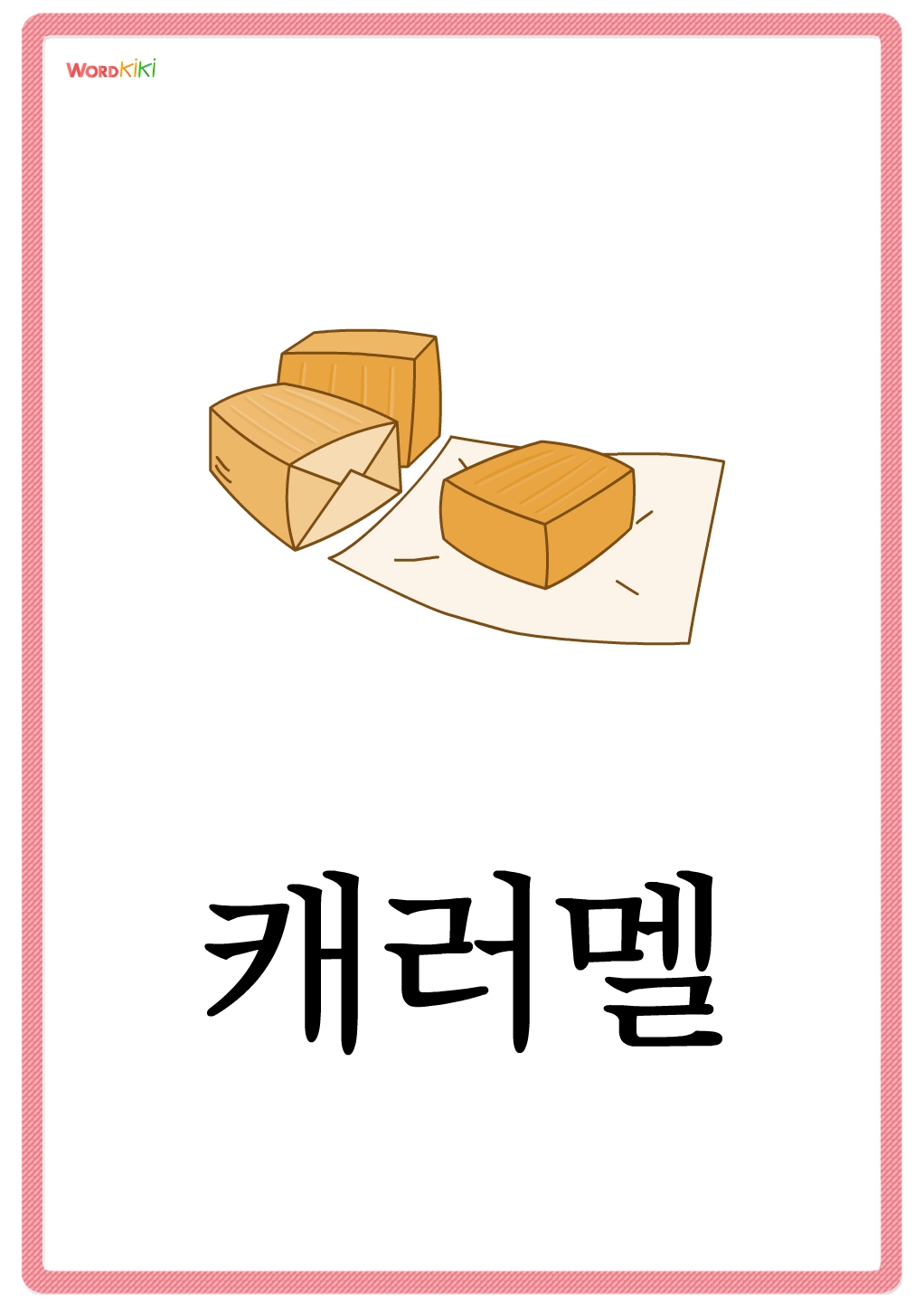 빵,우유,과일,아이스크림,주스,계란,과자,채소,케이크,사탕,초콜릿,캐러멜,커피,쿠키,솜사탕,아이스크림 콘,막대사탕,팝콘,차,도넛 단어 익히기를 할 수 있어요!!