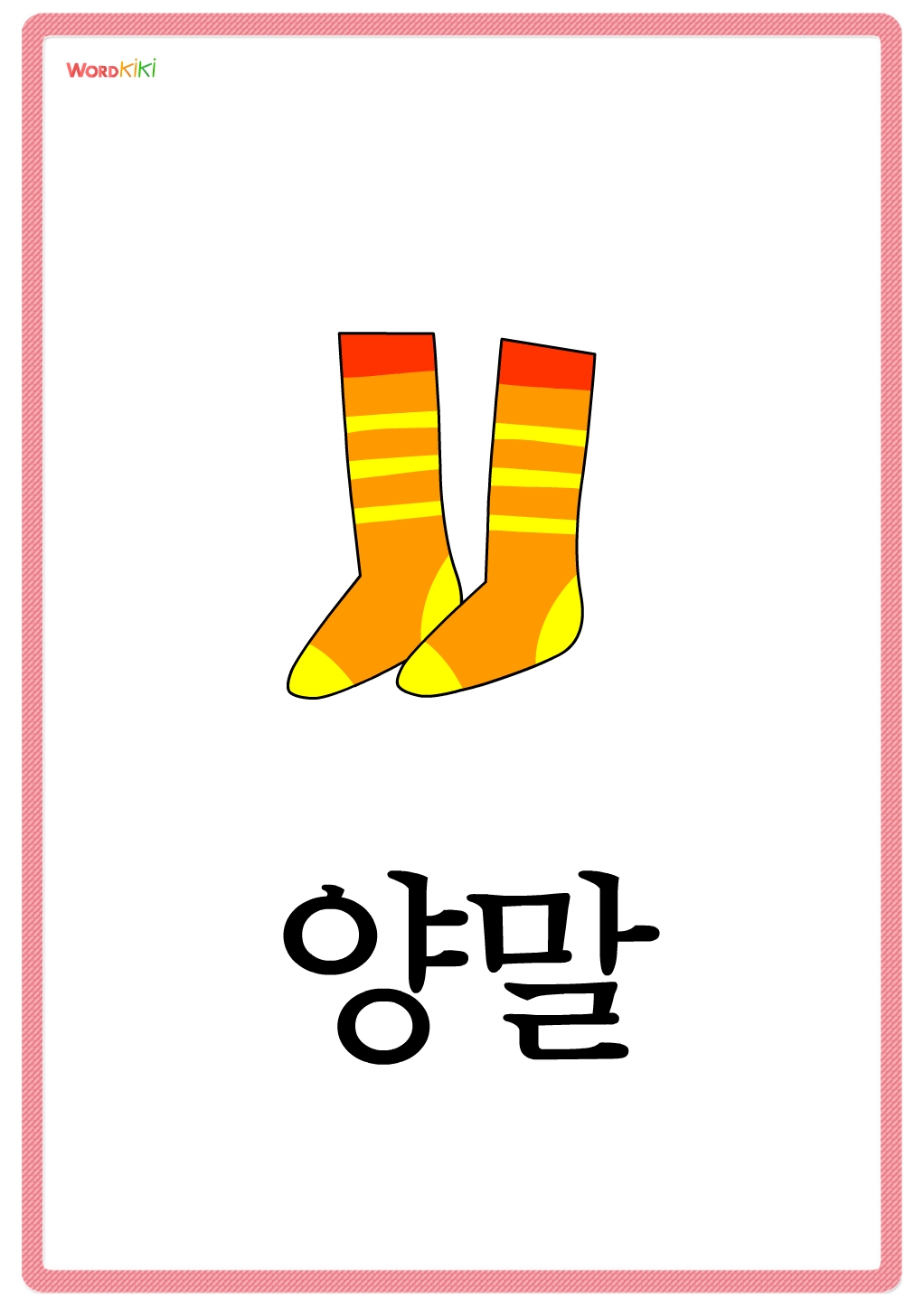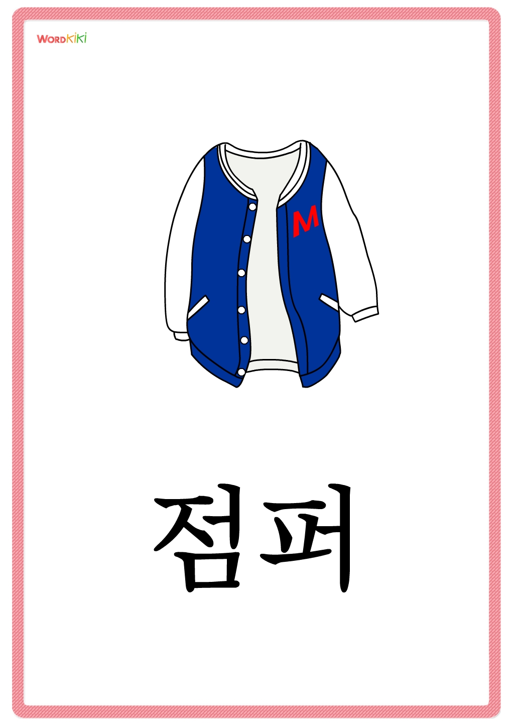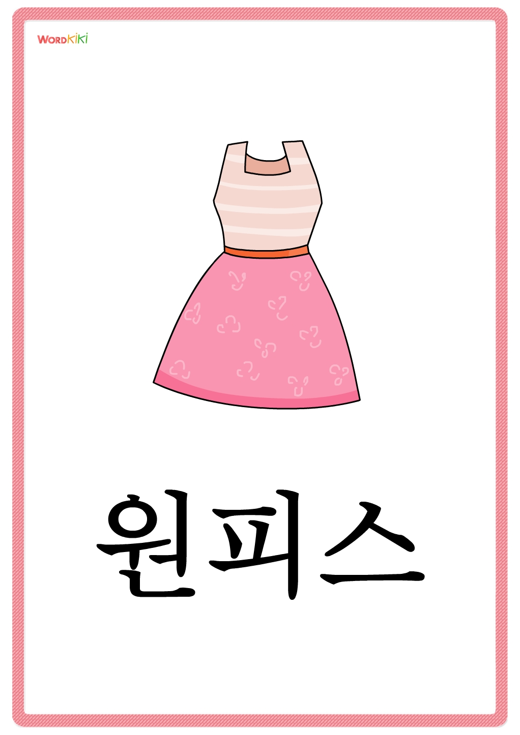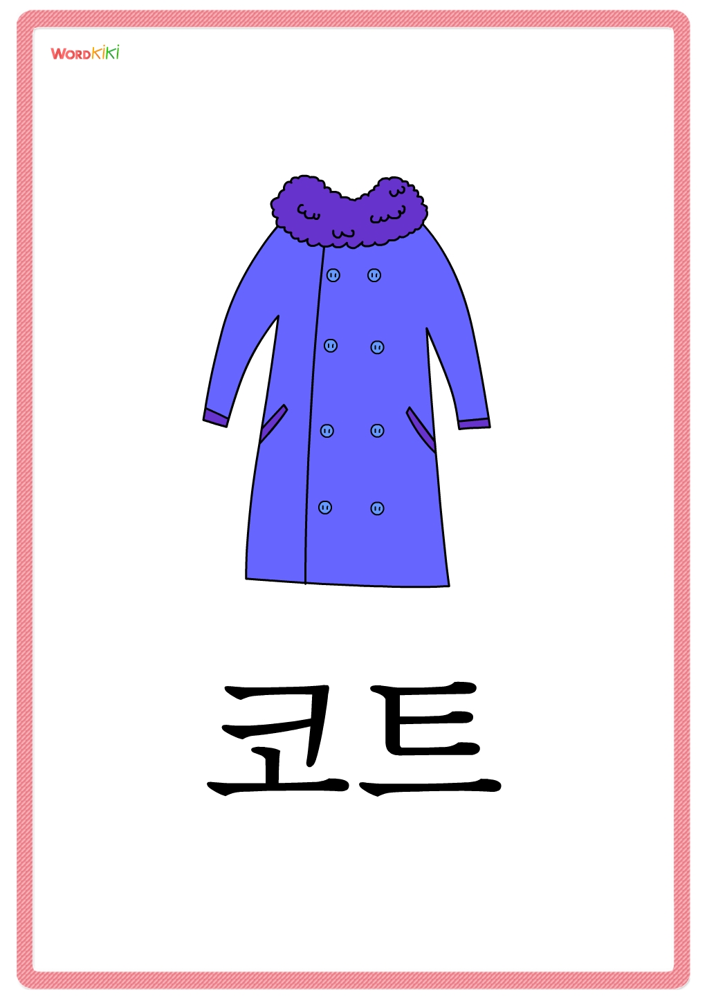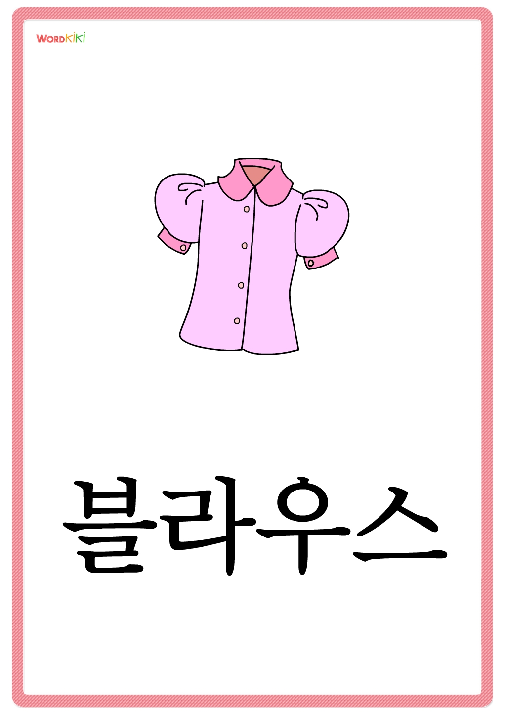 옷에 대한  한글 단어를 낱말카드(플래시카드)를 통해