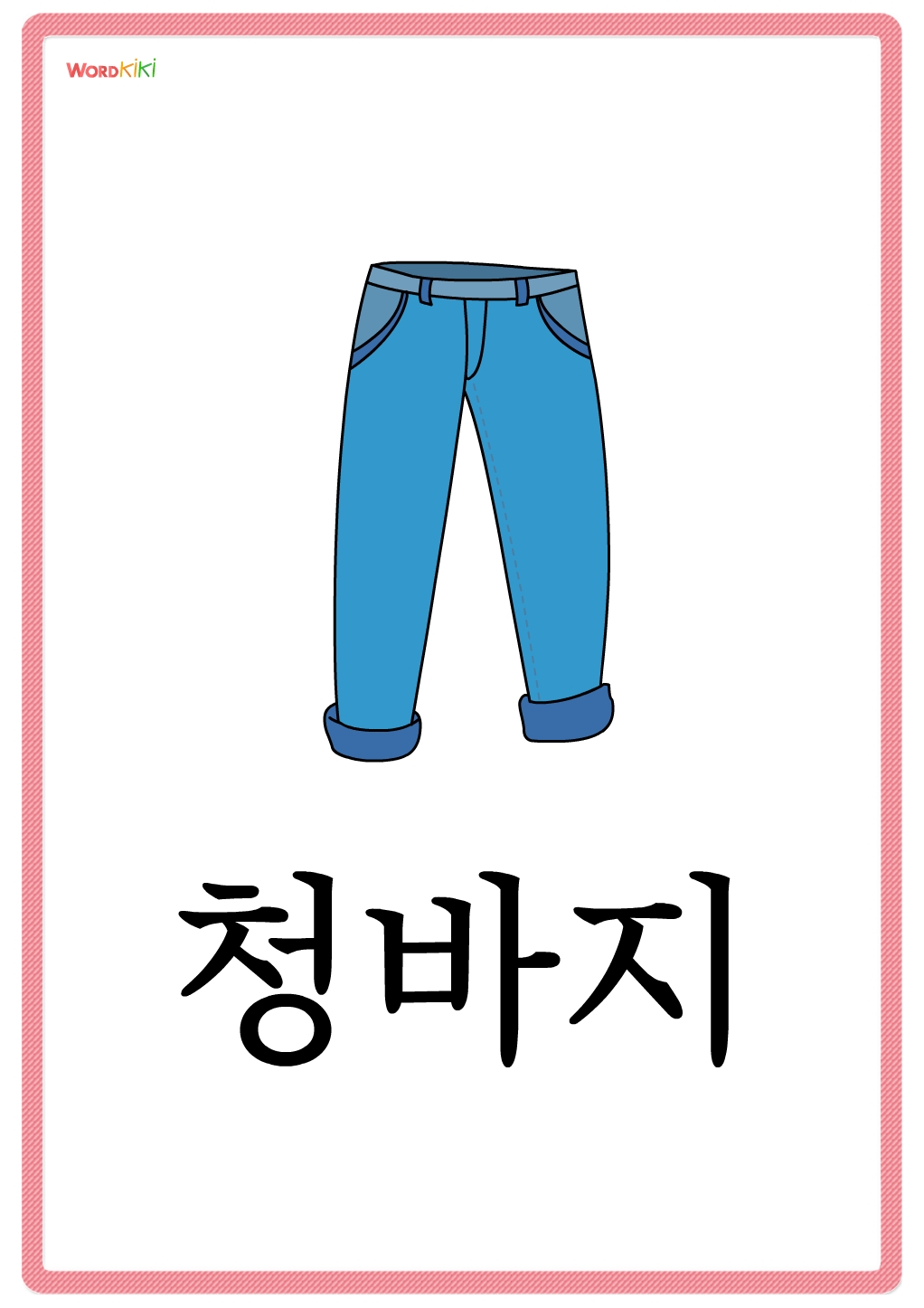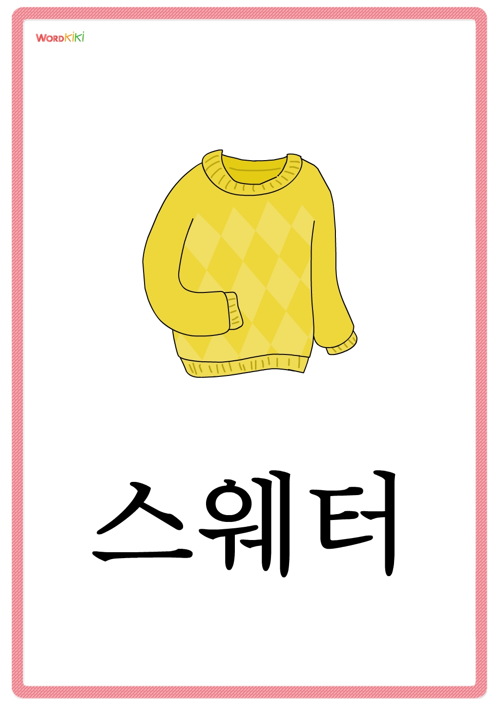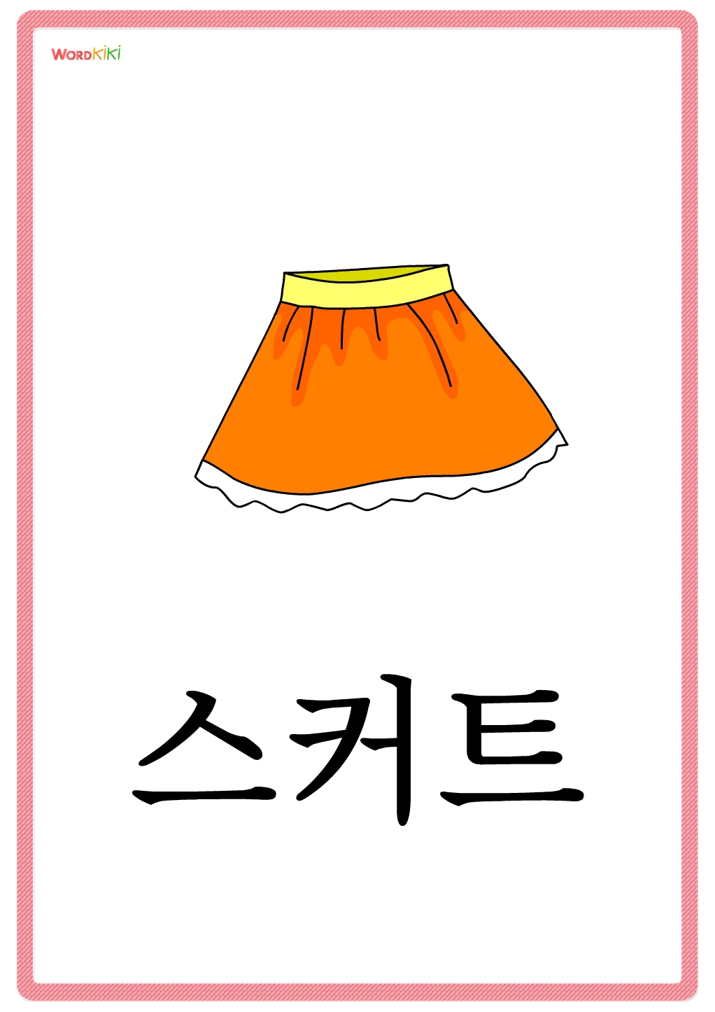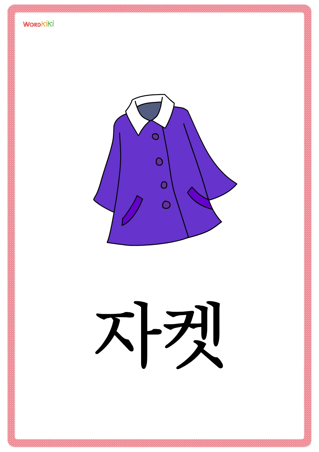 옷에 대한 한글 단어를 낱말카드(플래시카드)를 통해