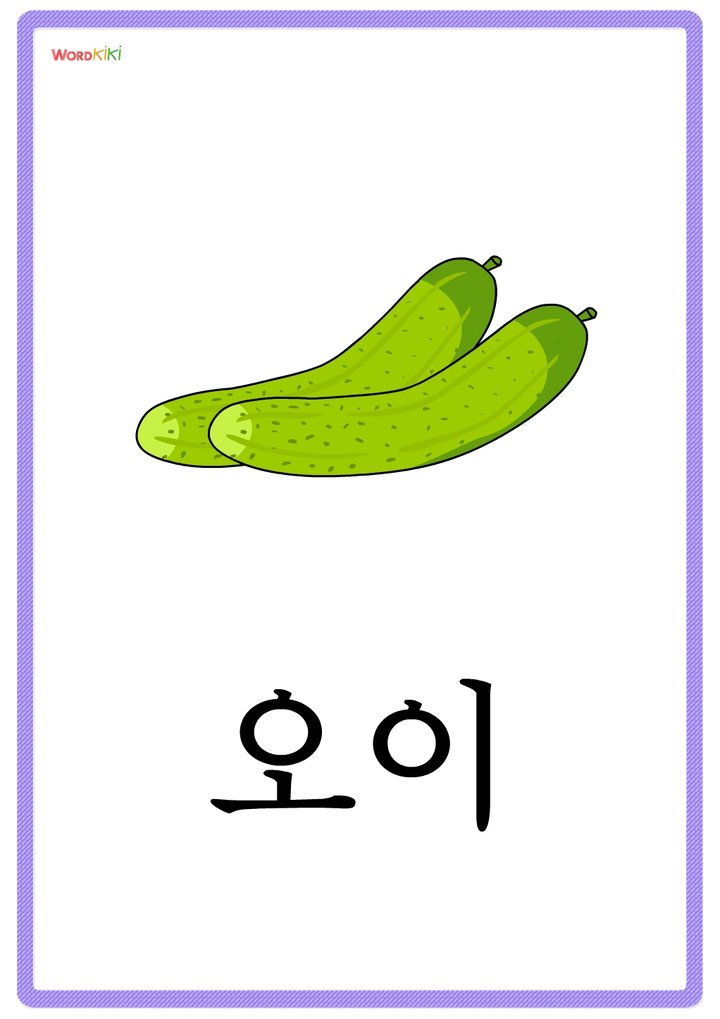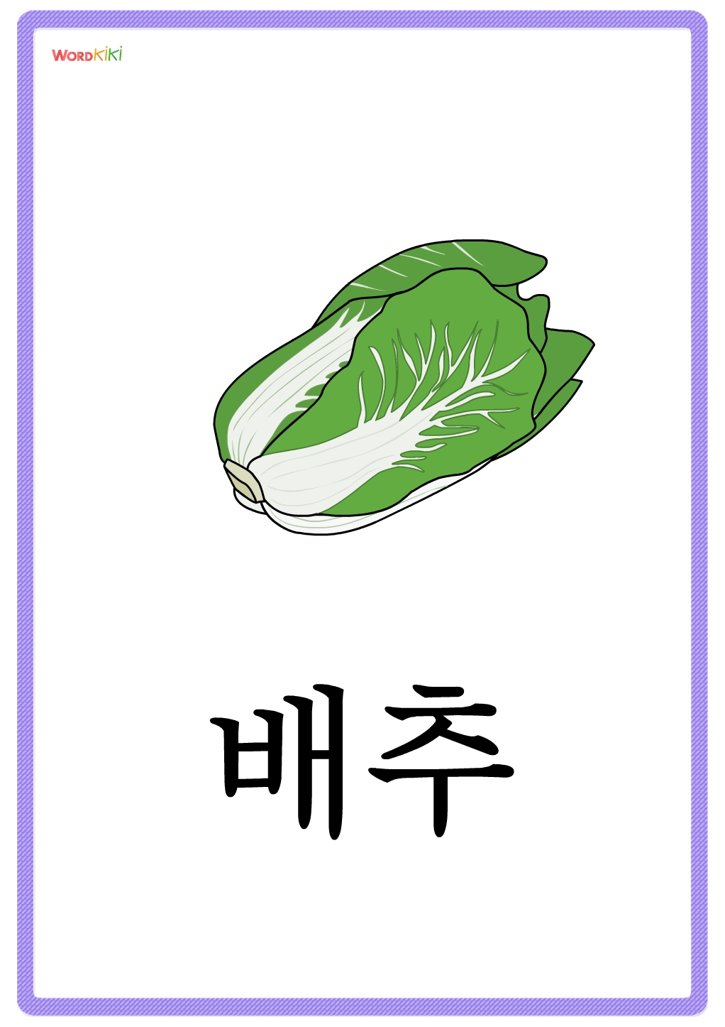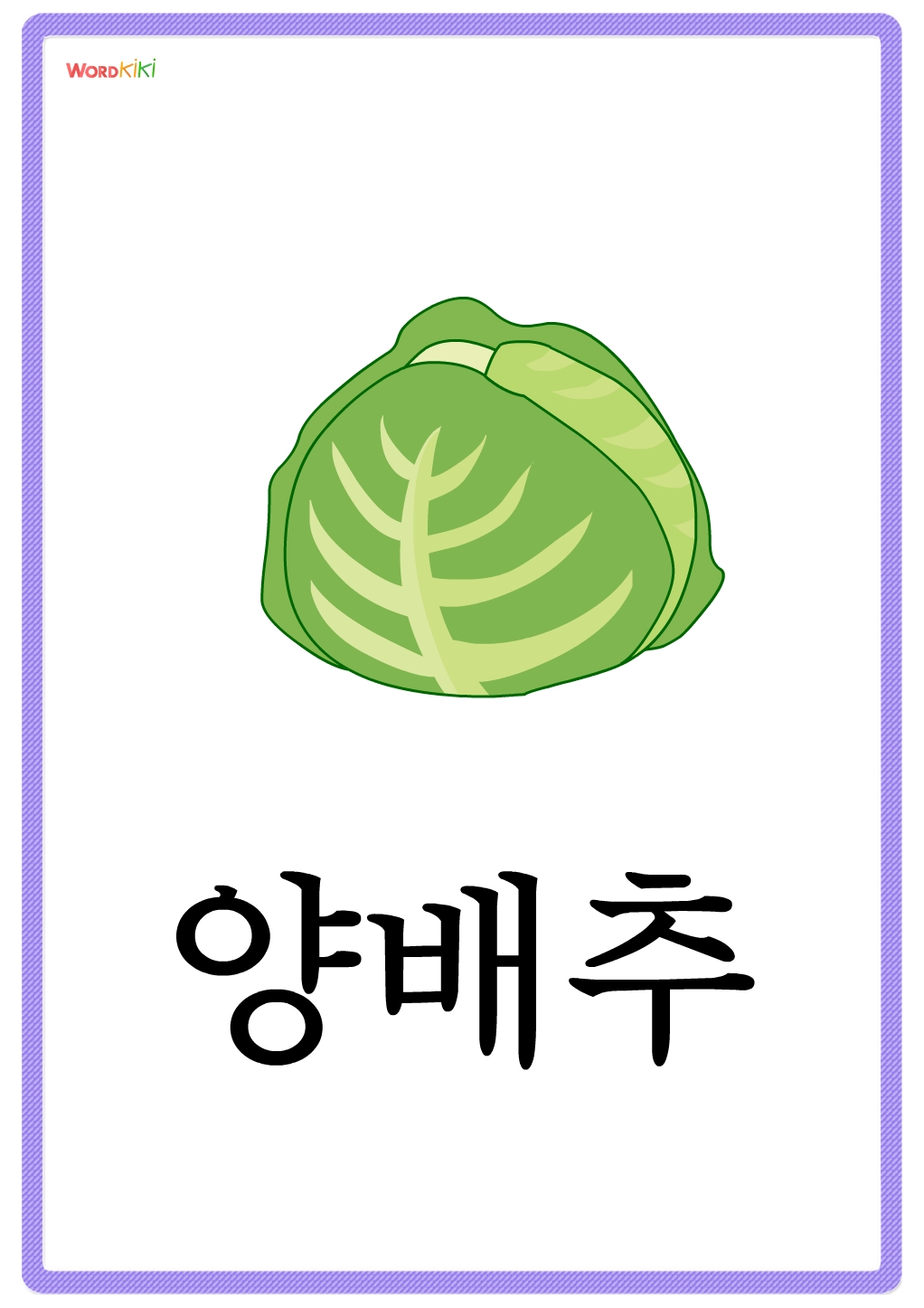 오이,무,당근,시금치,가지,호박,피망,고추,양파,감자,고구마,콩,마늘,버섯,토마토,배추,연근,생강,브로콜리,양배추,밤 등 야채와 관련된 한글 플래시카드 만들기 입니다.