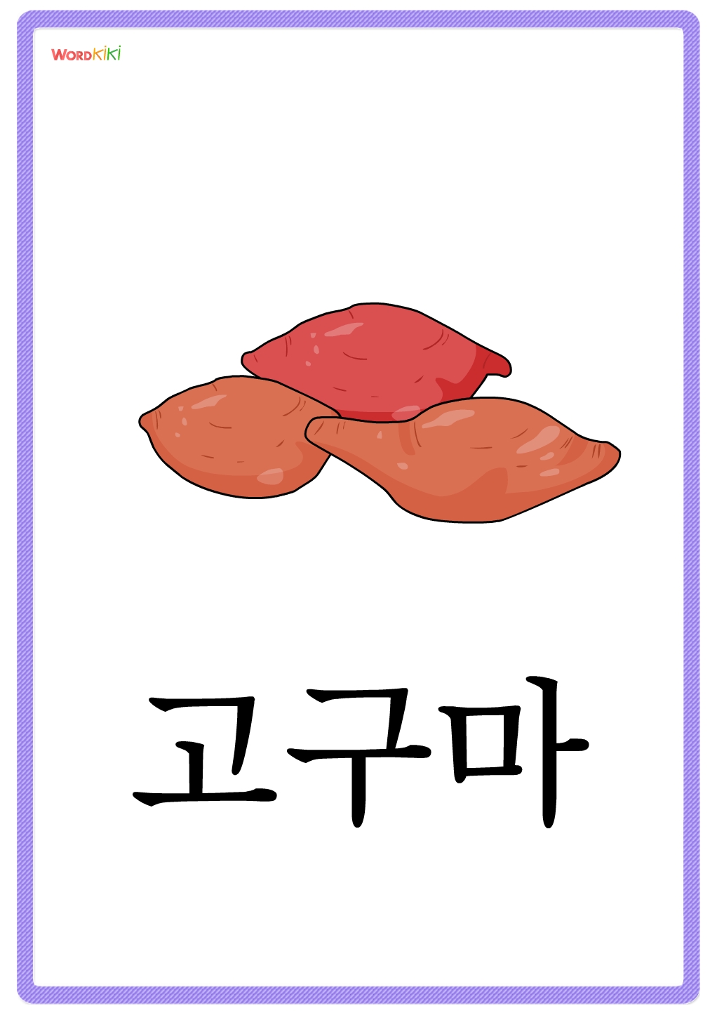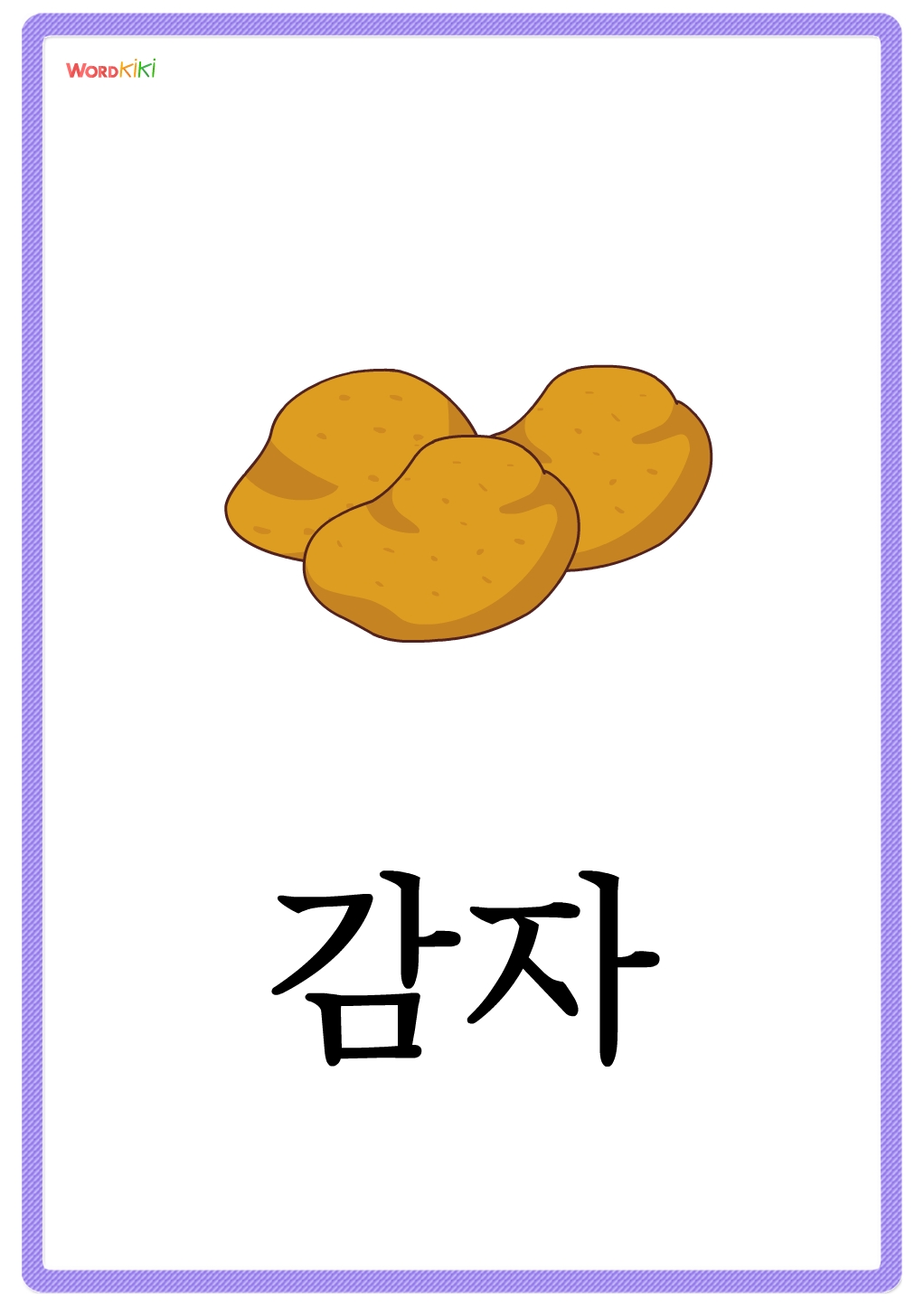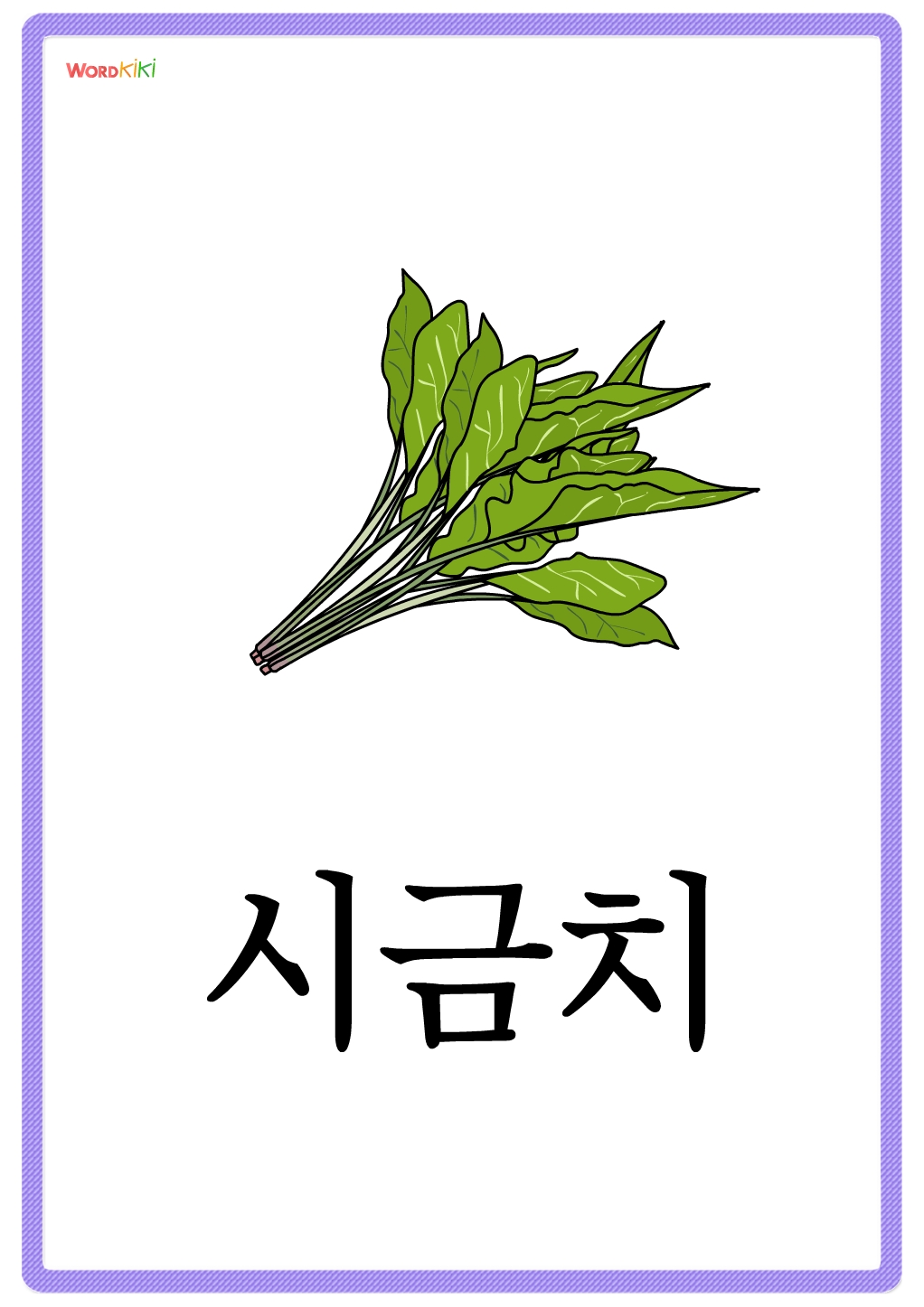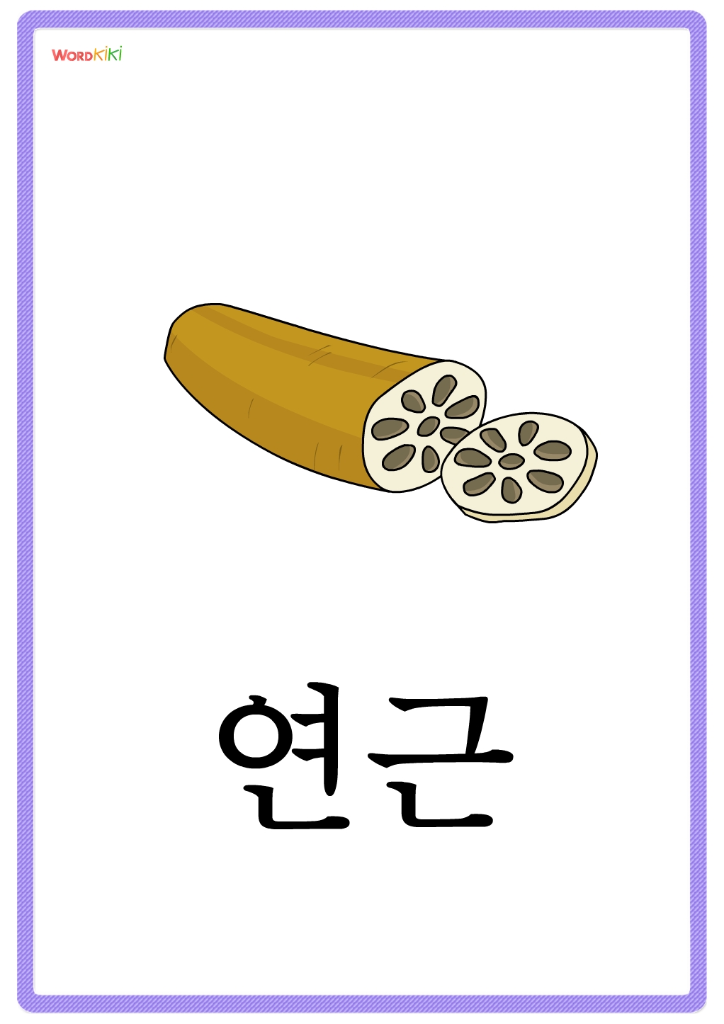 오이,무,당근,시금치,가지,호박,피망,고추,양파,감자,고구마,콩,마늘,버섯,토마토,배추,연근,생강,브로콜리,양배추,밤 등 야채와 관련된 한글 플래시카드 만들기 입니다.