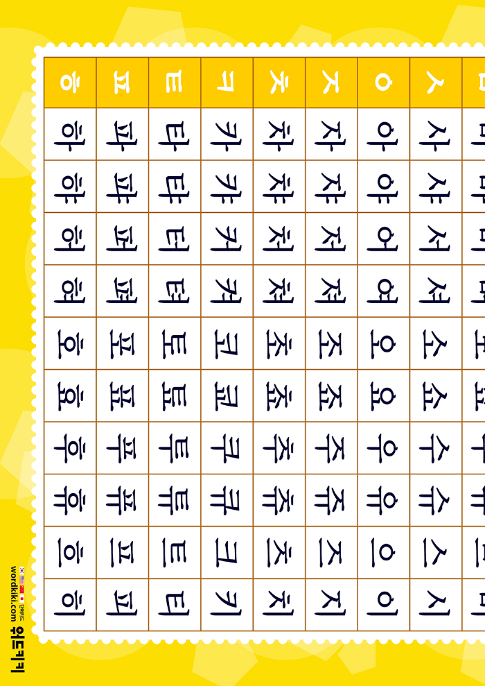 | [한글 음절 포스터 만들기 3장] A3 사이즈 - 한글 음절표 가갸거겨 (0) | 2024.03.17 |