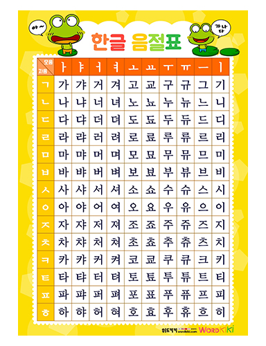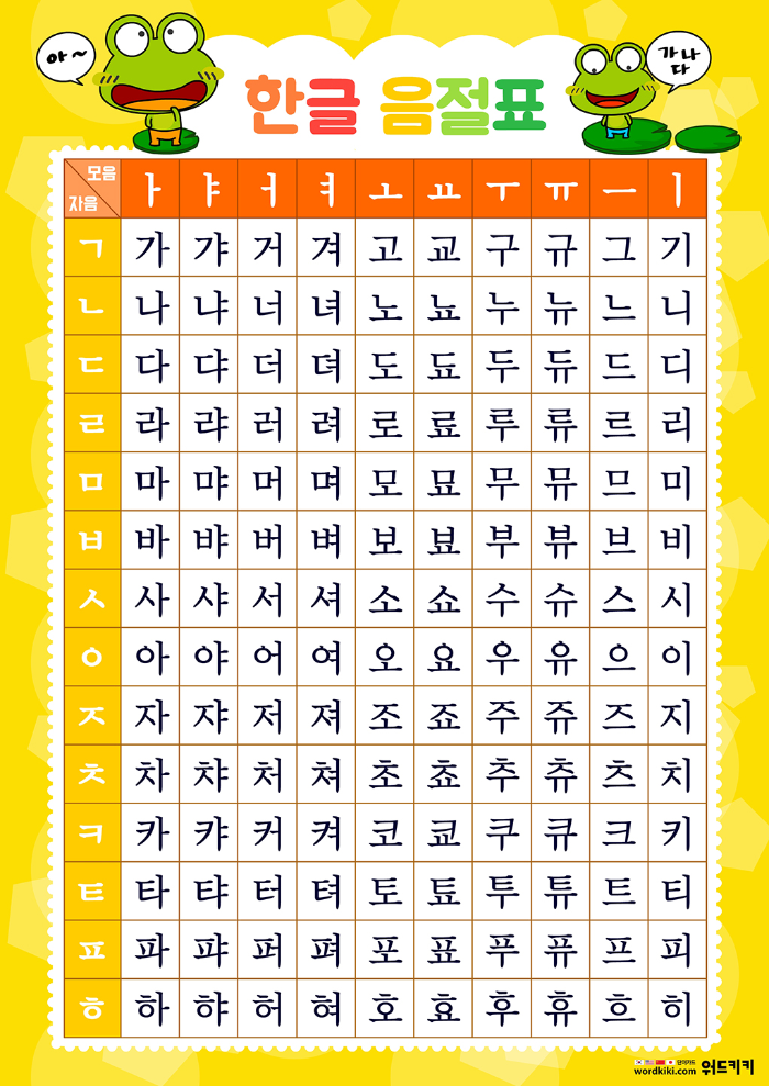 한글 음절표로 자음과 모음을 함께 공부해 보세요.